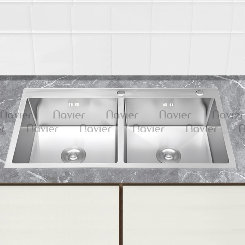 Chậu Rửa Chén 2 Ngăn Đều Inox Cao Cấp Không Sơn Navier NV-8346KS