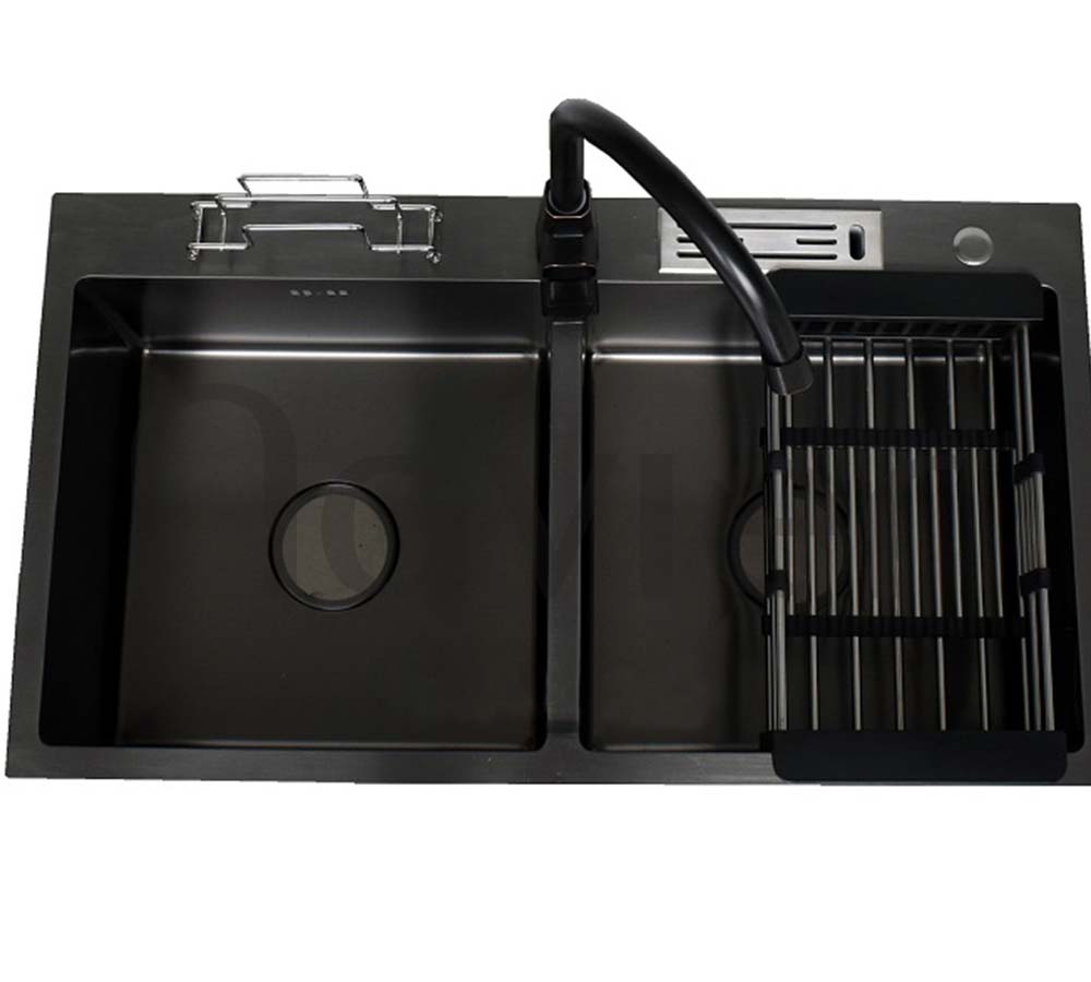 - Phủ nano đen sang trọng: Bề mặt inox 304 được phủ lớp nano đen cao cấp, không chỉ tăng tính thẩm mỹ mà còn có khả năng chống bám dầu mỡ, kháng khuẩn và dễ vệ sinh vượt trội. Màu đen nhám sang trọng giúp tôn lên vẻ đẹp đẳng cấp cho không gian bếp.