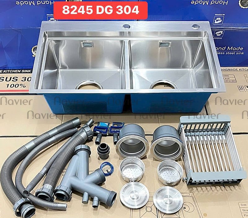 Chậu Rửa Chén 2 Ngăn Inox 304 Navier NV-8245D304B