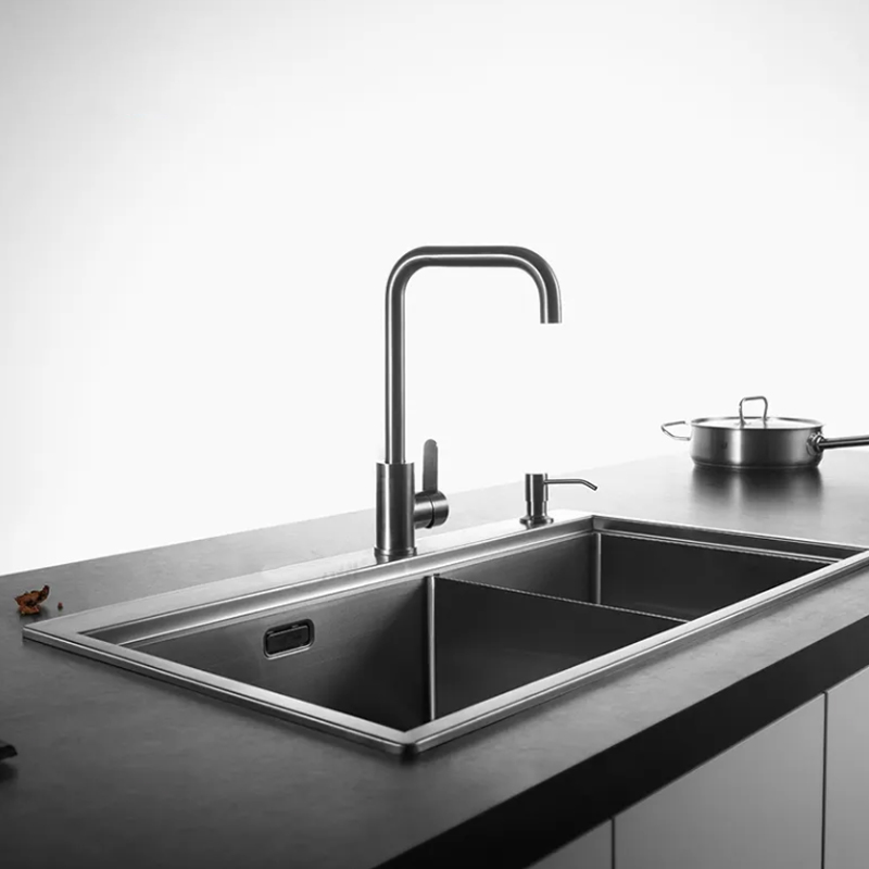 Chậu chén 2 ngăn lệch Inox304 chuẩn 100% phủ nano đen Navier NV-8245LD304