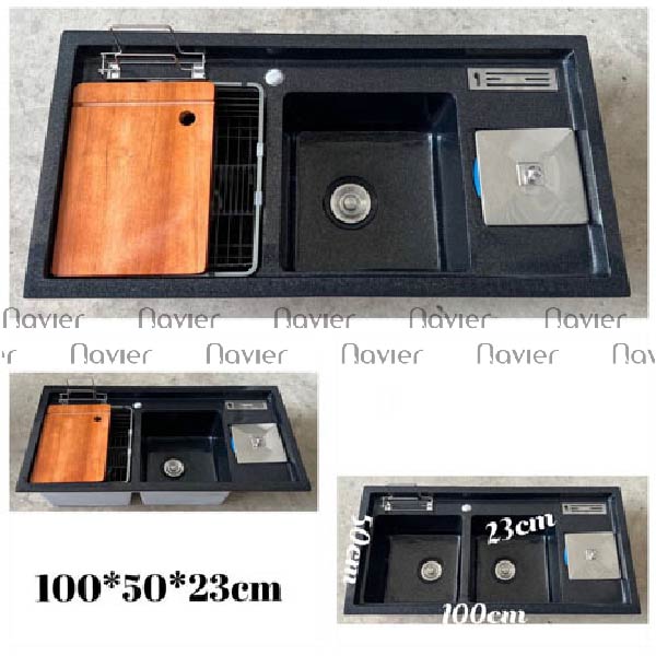 Chậu Rửa Chén 2 Hộc Đá Đen Nhân Tạo Siêu Mịn Navier CRD10050RDR Đặt online giảm 300.000 đ