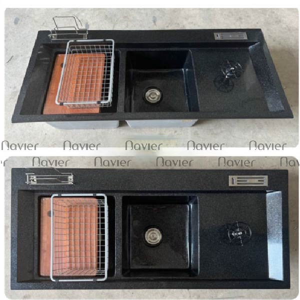 Chậu Rửa Chén 2 Hộc Đá Đen Nhân Tạo Siêu Mịn Navier CRD12052RDL Đặt online giảm 300.000 đ
