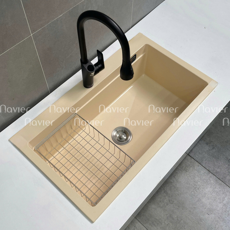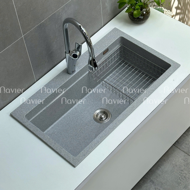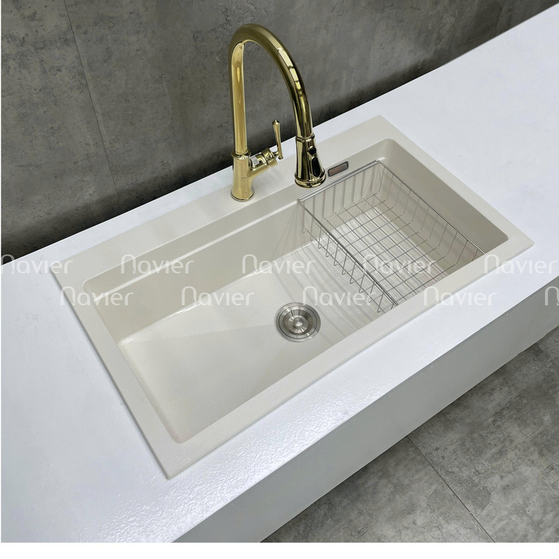 Chậu Navier NV-YT9052 có nhiều màu sắc hiện đại như đen, xám, kem… dễ dàng kết hợp với các mẫu tủ bếp, mặt đá, tạo nên tổng thể hài hòa và đẳng cấp.