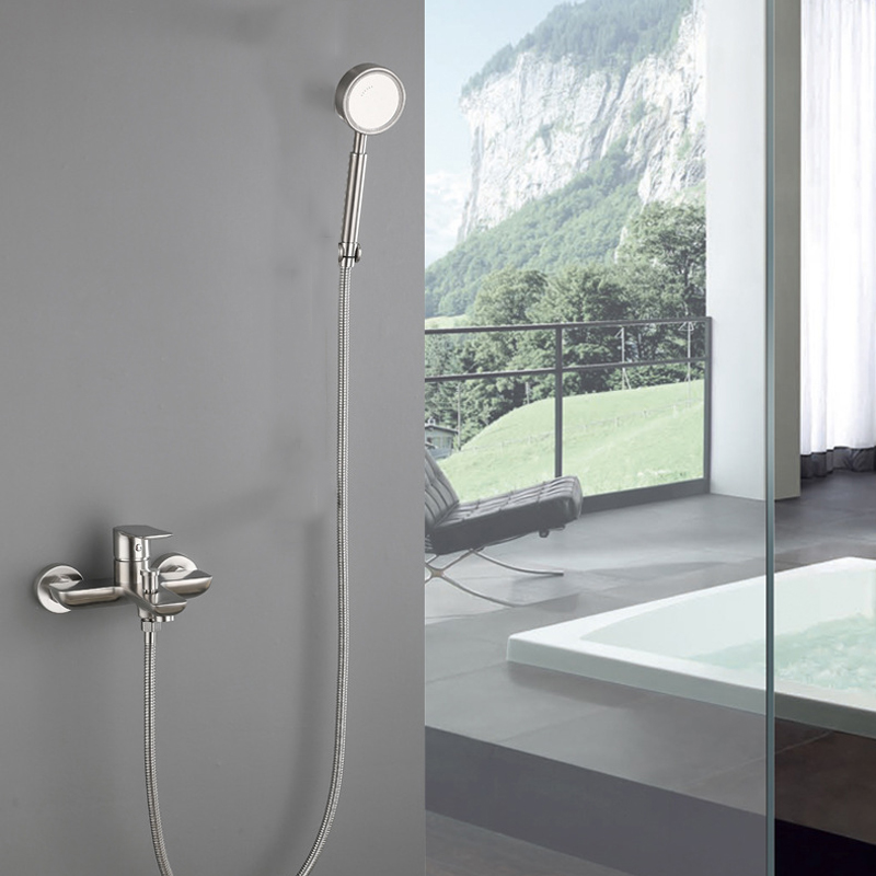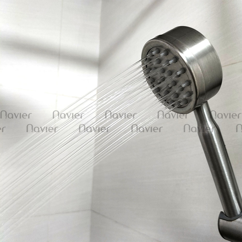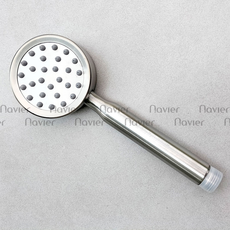 Tông màu bạc inox mờ sang trọng, kết hợp cùng tay sen đồng bộ tạo nên tổng thể hài hòa, góp phần nâng tầm thẩm mỹ cho phòng tắm.