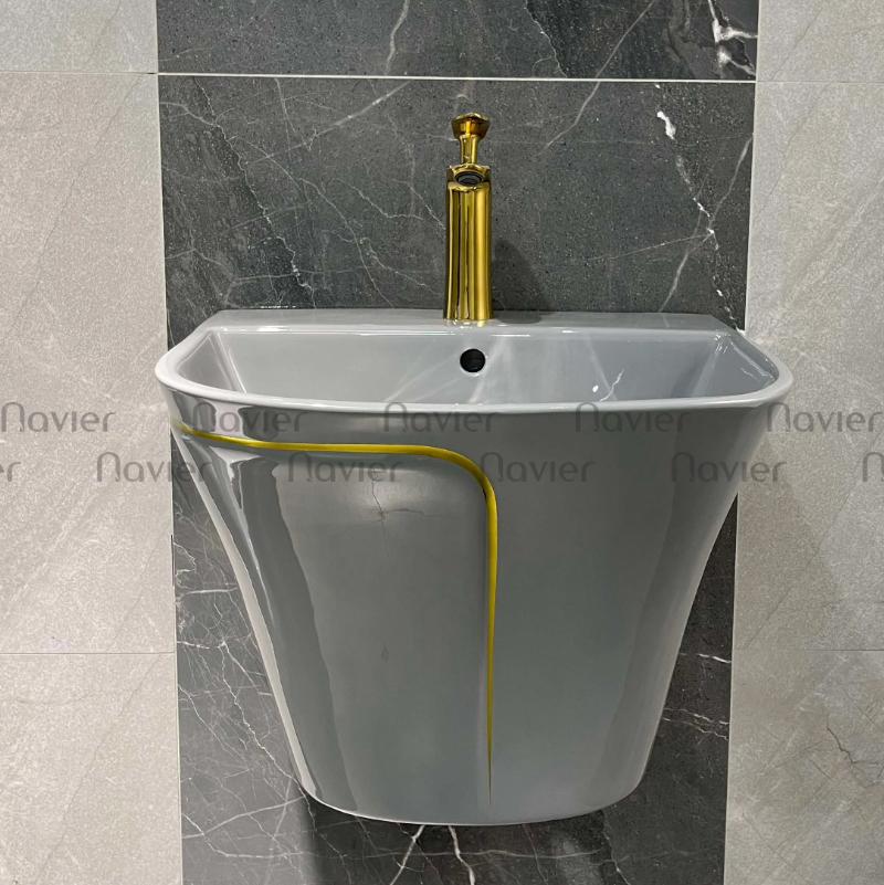 Lavabo Treo Tường Màu Xám Viền Vàng Cao Cấp Navier NV-422X là một trong những mẫu chậu rửa mặt cao cấp của thương hiệu Navier, sản phẩm này được làm từ sứ nung nguyên khối nên có độ bền rất cao và chất lượng vượt trội. Chậu có thiết kế màu xám độc đáo và viền vàng làm điểm nhấn, không chỉ là sản phẩm chậu rửa lavabo thông thường mà còn có thể làm nổi bật nên không gian phòng tắm nhà bạn.
