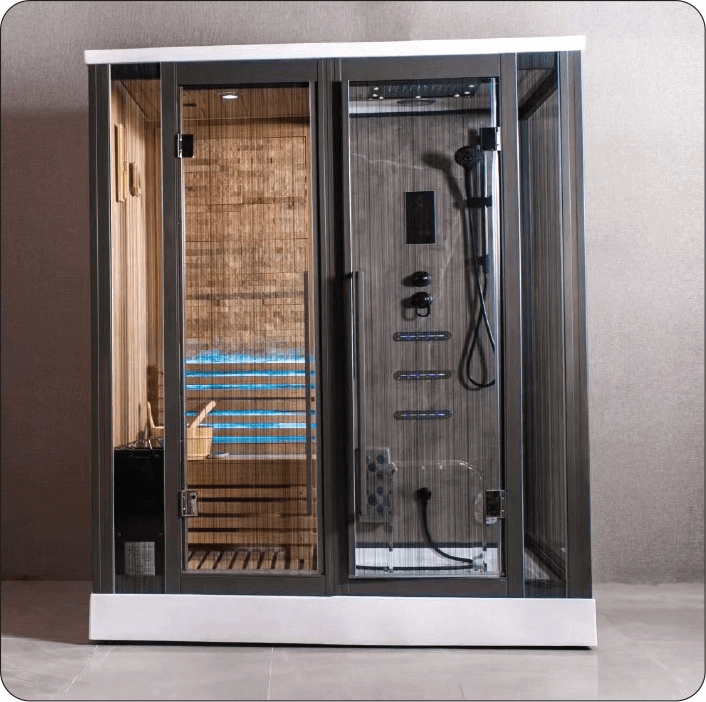 - Phòng xông hơi ướt có đế được thiết kế tư chất liệu Acrylic với độ cứng cao, chịu lực, chịu nhiệt tốt, chống ố, chống mốc, dễ lau chùi vệ sinh. Kết hợp với đế acrylic là khung hợp kim nhôm siêu bền ghép khít với hệ thống kính cường lực vững chắc, không làm thất thoát nhiệt ra ngoài phòng xông hơi.