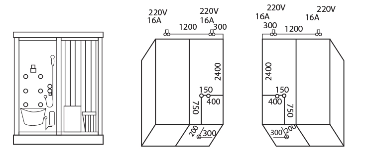 - Kích thước phòng xông nhỏ gọn, phù hợp với nhiều kiểu không gian khác nhau: 1600x1100x2180mm.