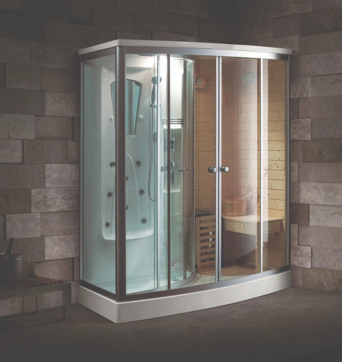 - Tích hợp phòng xông hơi khô bằng gỗ chuyên dụng và phòng xông hơi ướt vừa có thể xông hơi, tắm và massage. Nhờ đó, làm gia tăng trải nghiệm của người sử dụng.