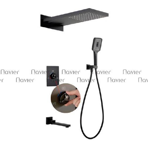 Bộ sen tắm âm tường Nvaier PVD đen là một sản phẩm cao cấp, kết hợp giữa tính thẩm mỹ và công năng một cách hoàn hảo.