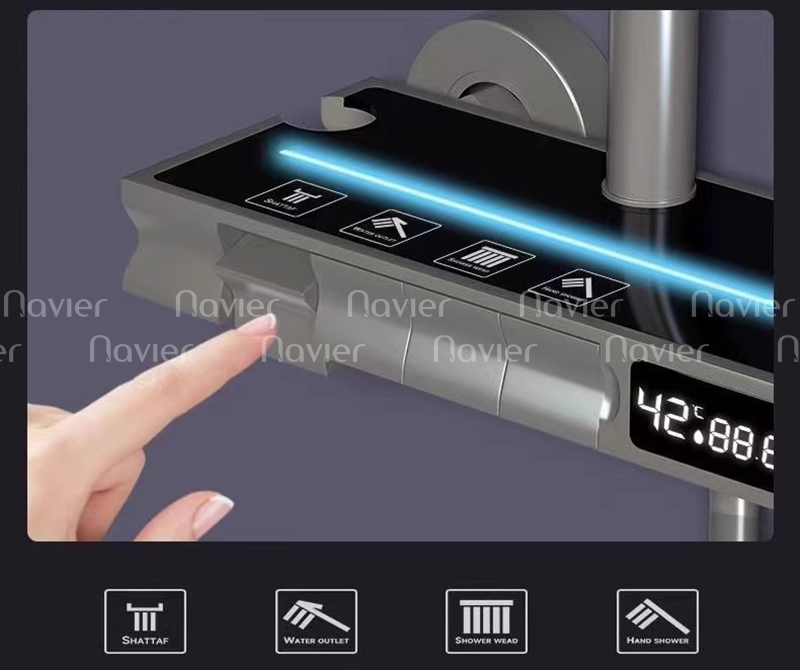 Sen cây tắm với thiết kế phím đàn và màn hình hiển thị nhiệt độ