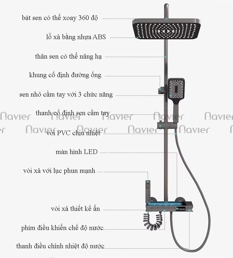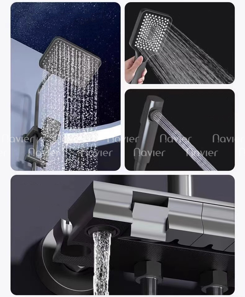 - Sen cây tắm với 4 chố độ nước tiện lợi: Xả đài sen tắm toàn thân,xả vòi nước xuống chậu, xả tắm tay cầm, xịt vệ sinh