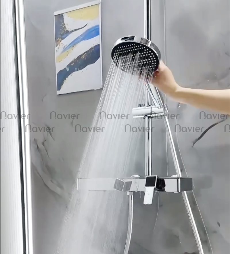 Navier NV-CS76 mang đến trải nghiệm tắm linh hoạt với sen trần cho dòng nước tỏa đều, êm ái, giúp thư giãn tối đa sau một ngày dài. Bên cạnh đó, sen cầm tay 3 chế độ cho phép tùy chỉnh kiểu phun nước theo nhu cầu sử dụng như tắm nhanh, xả tráng hay massage nhẹ nhàng, đáp ứng đa dạng thói quen sinh hoạt.