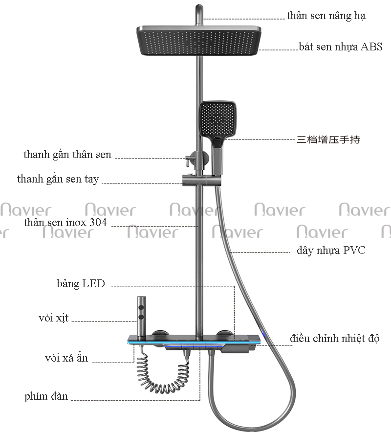 Sản phẩm Sen Cây Tắm Nóng Lạnh Đồng Thau Mạ PVD Led Hiển Thị Nhiệt Độ Cao Cấp Navier NV-892 hiện được phân phối chính thức tại hệ thống Thiết Bị Vệ Sinh Giá Kho – đại lý chính hãng Navier trên toàn quốc.
