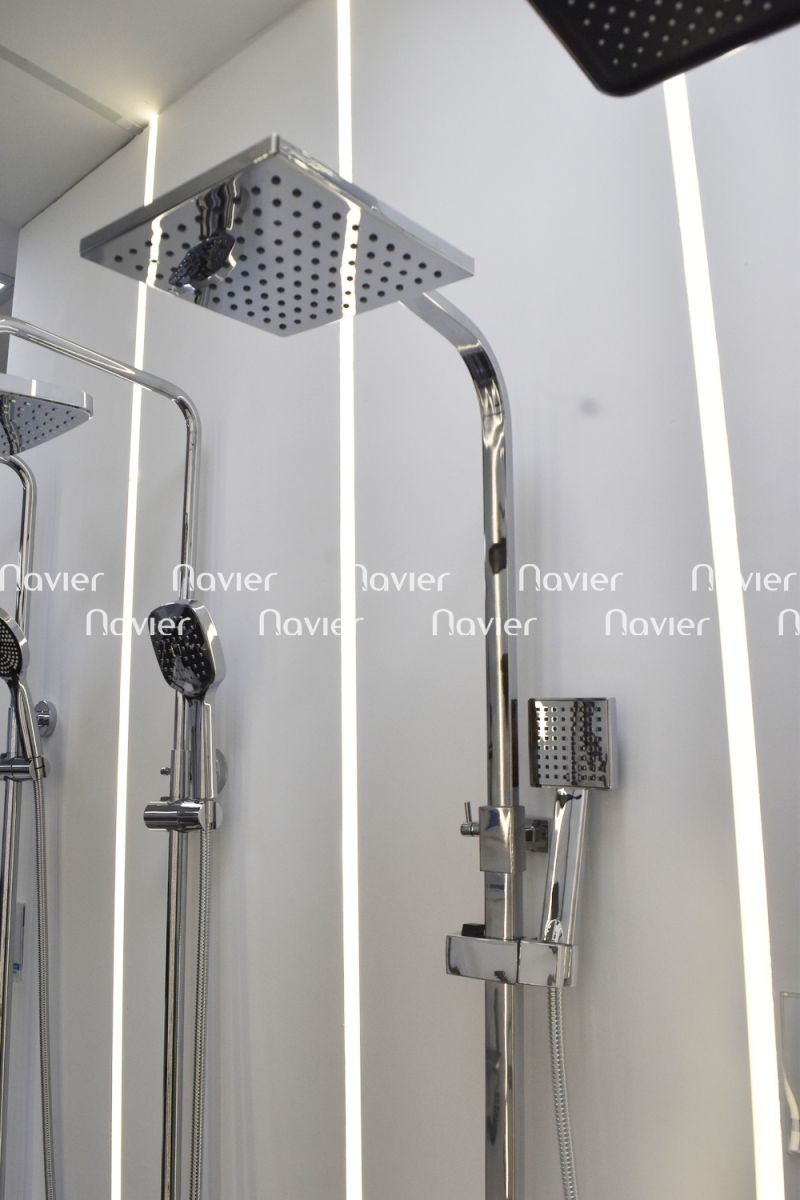 Navier NV-CS66 sở hữu thiết kế tối giản hiện đại, các đường nét vuông vức kết hợp với lớp hoàn thiện inox sáng bóng, tạo cảm giác chắc chắn và tinh tế. Sen cây được thiết kế dạng treo tường, tiết kiệm diện tích và dễ dàng lắp đặt trong mọi không gian phòng tắm – từ căn hộ chung cư đến biệt thự sang trọng.