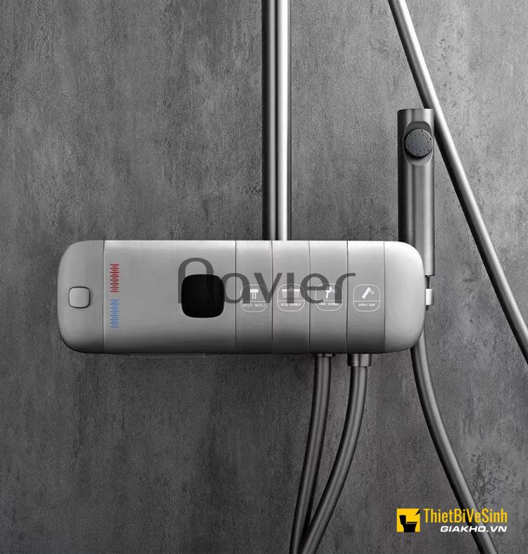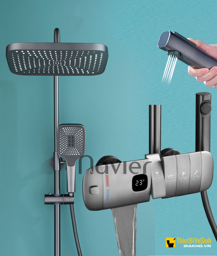 Sản phẩm Sen Cây Tắm Nóng Lạnh Phím Bấm Mạ PVD Màu Xám Ghi Hiển Thị Nhiệt Độ LED NV-827 hiện được phân phối chính thức tại hệ thống Thiết Bị Vệ Sinh Giá Kho – đại lý chính hãng Navier trên toàn quốc.