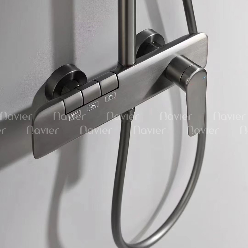 Sen Cây Tắm Nóng Lạnh Đồng Thau Điều Khiển Phím Đàn Màu Xám Navier NV-1636X là dòng sen tắm cao cấp sở hữu thiết kế sang trọng, gam màu xám hiện đại cùng hệ thống điều khiển phím đàn thông minh. Sản phẩm được nghiên cứu nhằm mang đến trải nghiệm tắm tiện nghi, an toàn và đẳng cấp cho không gian phòng tắm gia đình cũng như các công trình cao cấp.