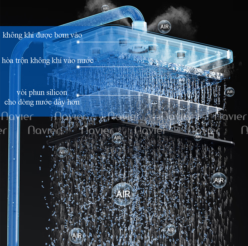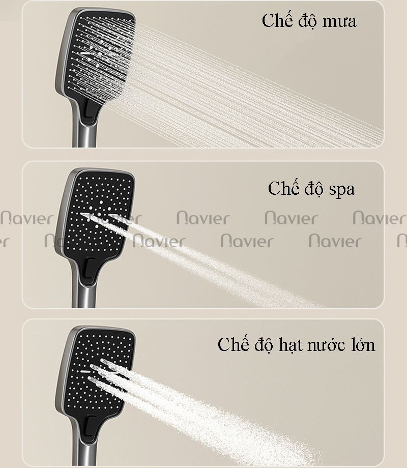 Nhiều chế độ phun nước: Navier NV-8358 cung cấp nhiều chế độ phun nước khác nhau như phun mưa, phun tia, phun massage, giúp thư giãn cơ thể sau một ngày làm việc mệt mỏi.