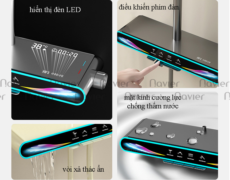 Sen cây tắm phím đàn có hiển thị nhiệt độ Navier NV-8358 được sản xuất với các tính năng nổi trội, trong đó phải kể đến những đặc điểm chính như: