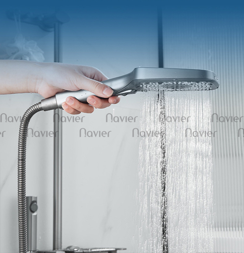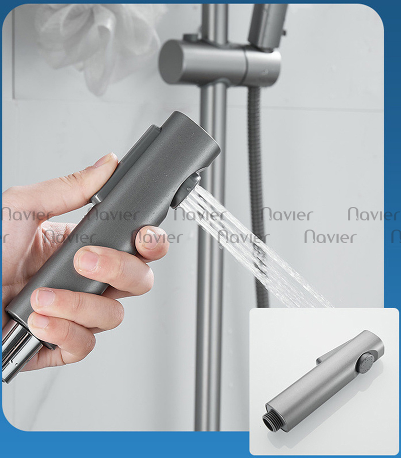 - Vòi xịt rửa kèm theo: Navier NV-9355XA đi kèm với vòi xịt rửa, giúp bạn tiện lợi trong việc tắm rửa các bộ phận khó tiếp cận như chân, lưng, hoặc để vệ sinh phòng tắm.
