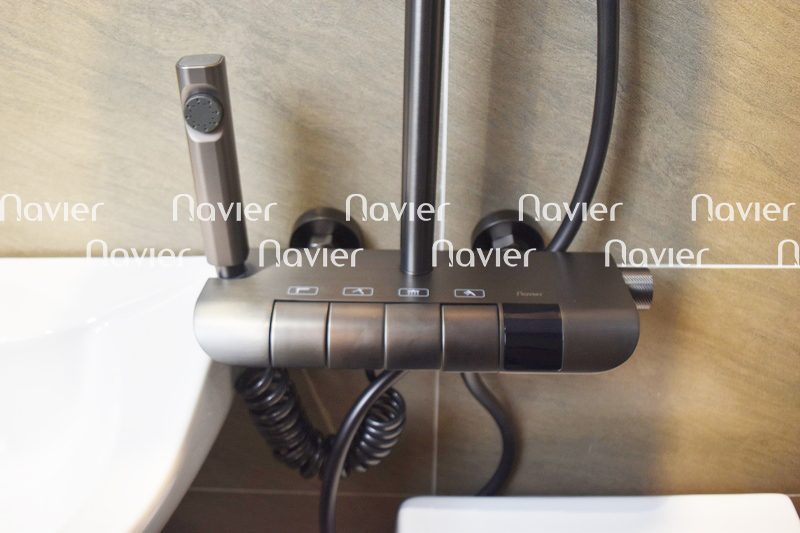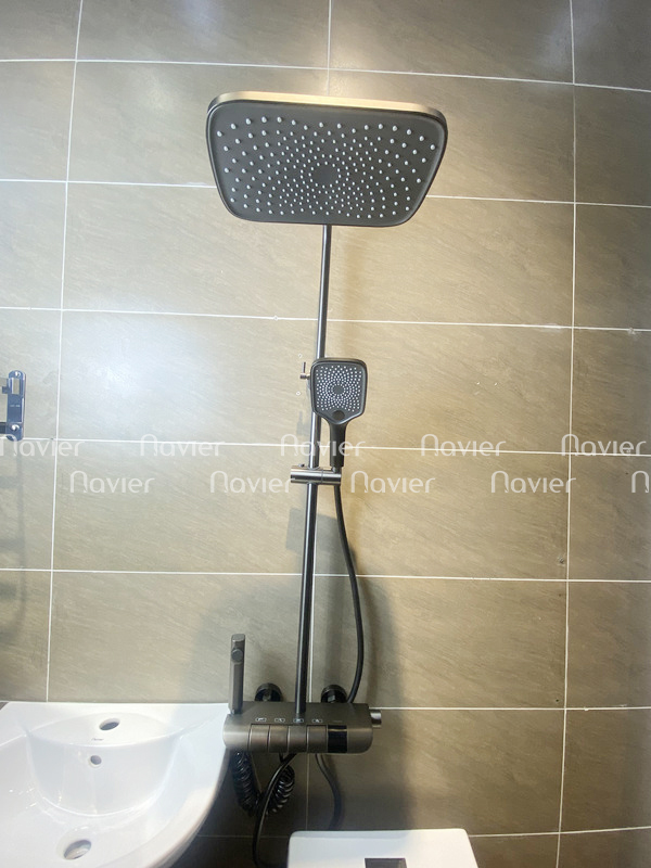Sản phẩm Sen tắm đứng nóng lạnh đồng thau xám phím đàn led nhiệt độ NV-815 hiện được phân phối chính thức tại hệ thống Thiết Bị Vệ Sinh Giá Kho – đại lý chính hãng Navier trên toàn quốc.