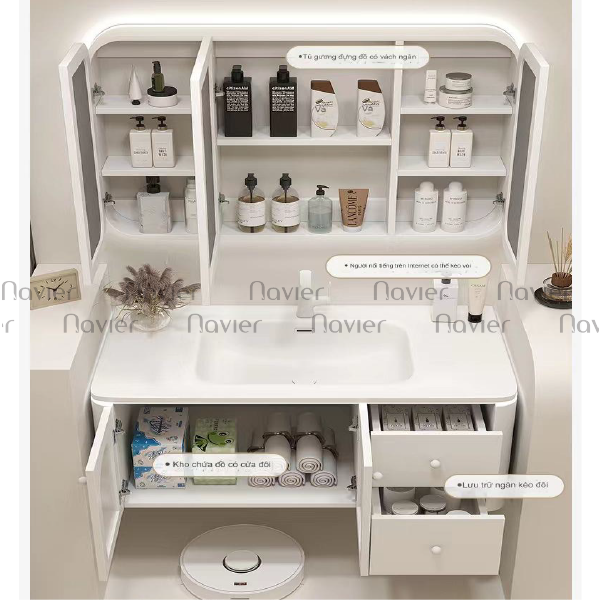 Với thiết kế hiện đại, chất liệu cao cấp và nhiều tính năng thông minh, tủ Lavabo Nhựa PVC Cao Cấp Navier NV-565 là lựa chọn lý tưởng cho không gian phòng tắm tiện nghi và sang trọng. Sản phẩm không chỉ tối ưu hóa không gian mà còn mang đến sự thoải mái và tiện lợi cho người sử dụng.