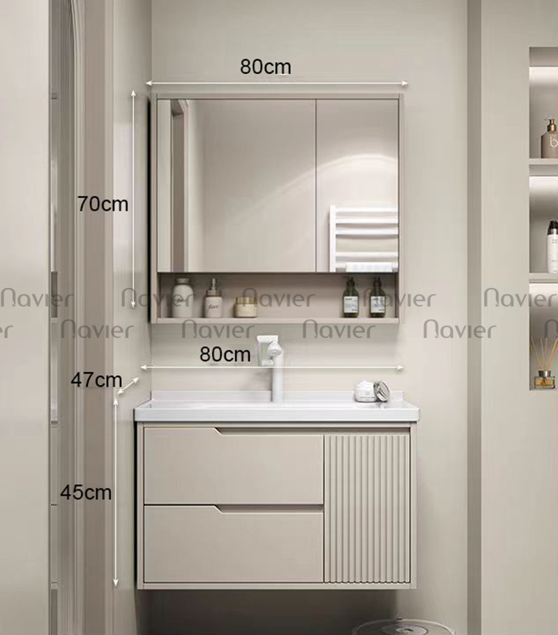 Tủ Chậu Lavabo Nhựa PVC Đặc Cao Cấp Navier NV-575 là mẫu tủ chậu lavabo phòng tắm chất lượng cao được rất nhiều khách hàng ưa chuộng, sản phẩm này có thiết kế hiện đại giúp làm nổi bật nên không gian sử dụng. Chất liệu của tủ là chất liệu nhựa PVC đặc cao cấp nên có khả năng chống nước tuyệt đối, bề mặt được phủ nano chống bám bẩn hiệu quả nên rất dễ dàng vệ sinh trong quá trình sử dụng hàng ngày.