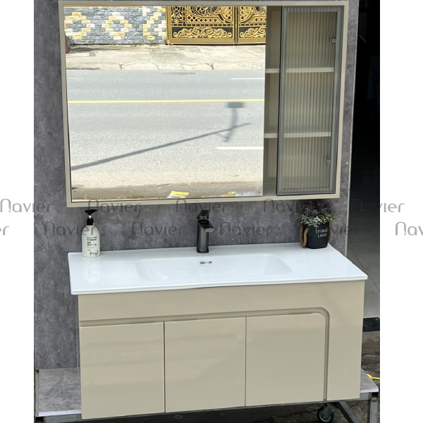 - Thiết kế hiện đại: Tủ lavabo sở hữu thiết kế góc cạnh, đường nét tinh tế, màu be sang trọng, mang đến vẻ đẹp hiện đại và tinh tế cho không gian phòng tắm của bạn