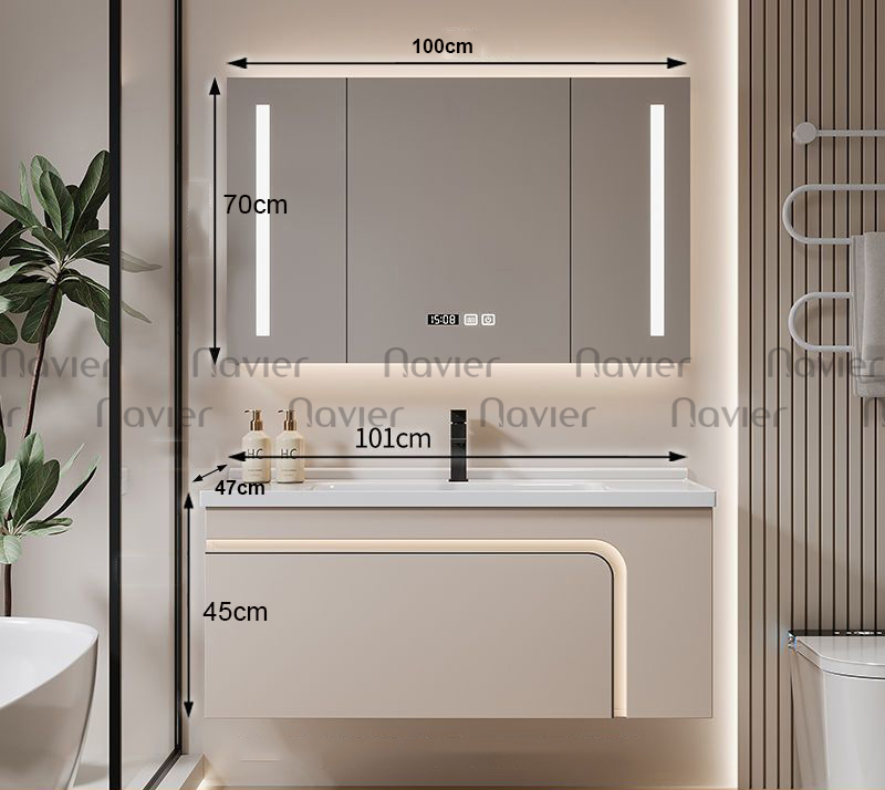 - Kích thước: 100x47cm, phù hợp với nhiều không gian phòng tắm khác nhau