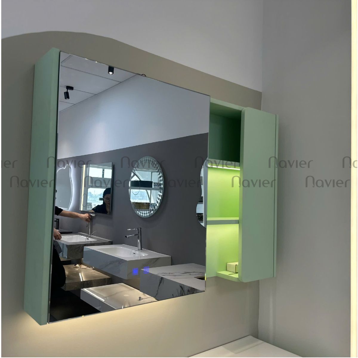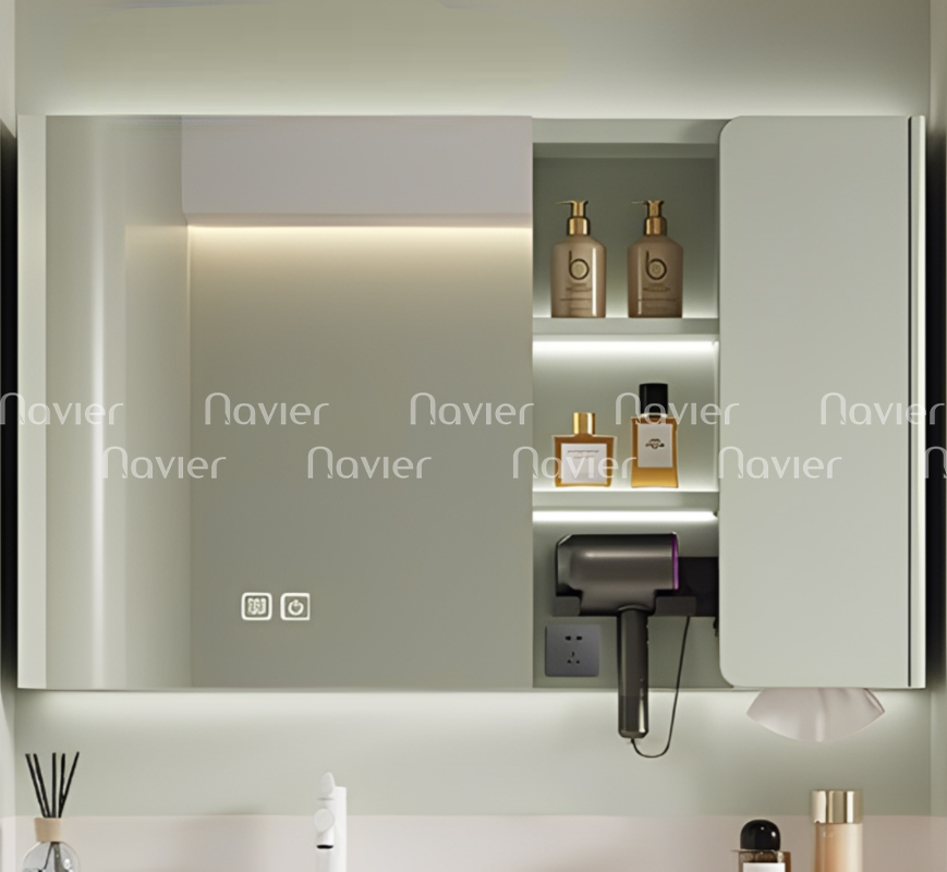 Tủ Gương Lavabo Navier NV-TG1812 là sự kết hợp hoàn hảo giữa thiết kế hiện đại và tính năng thông minh, mang lại không gian phòng tắm sang trọng và tiện nghi. Với chất liệu nhôm tổ ong chống nước, bộ sản phẩm này không chỉ đáp ứng nhu cầu sử dụng mà còn đảm bảo độ bền lâu dài và dễ dàng vệ sinh.