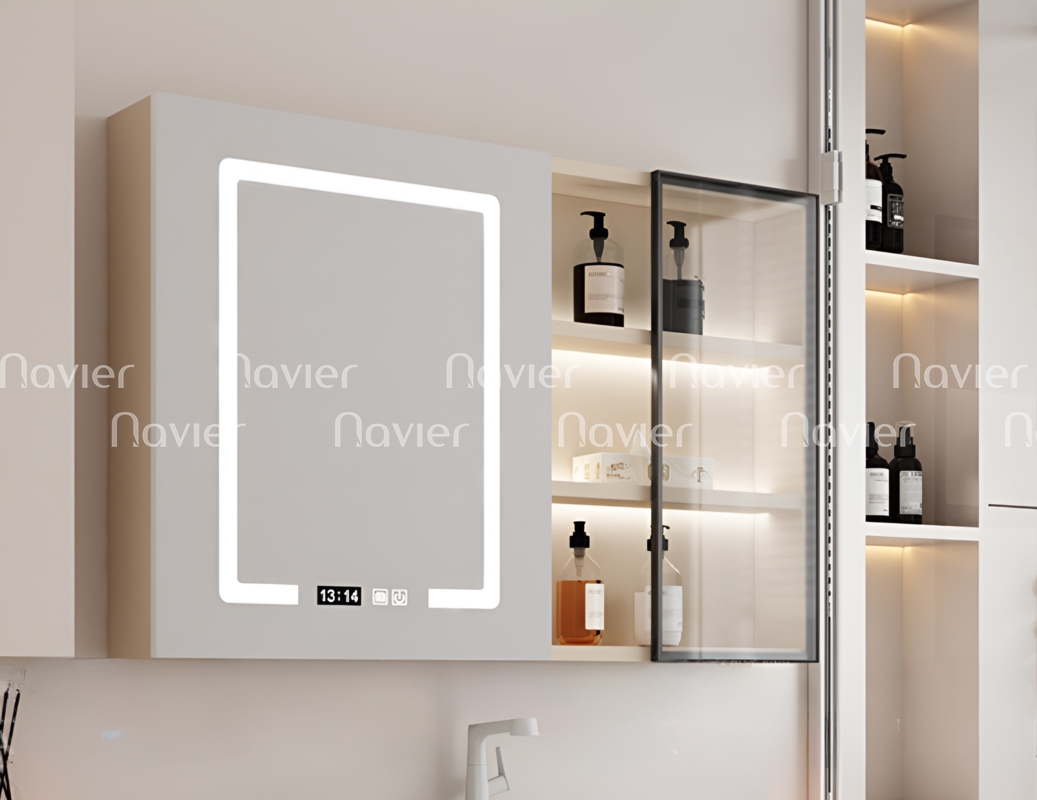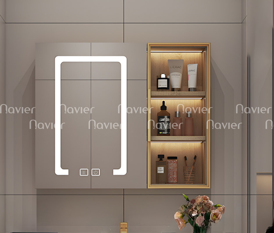 Mẫu Tủ Gương Lavabo Nhựa PVC Navier NV-TG004 không chỉ là một chiếc tủ lavabo nhà tắm thông thường mà nó còn được đánh giá cao bởi thiết kế sang trọng, có đèn LED hỗ trợ ánh sáng và đặc biệt là thiết kế rộng rãi để giúp người dùng chứa đựng được nhiều đồ đạc hơn.