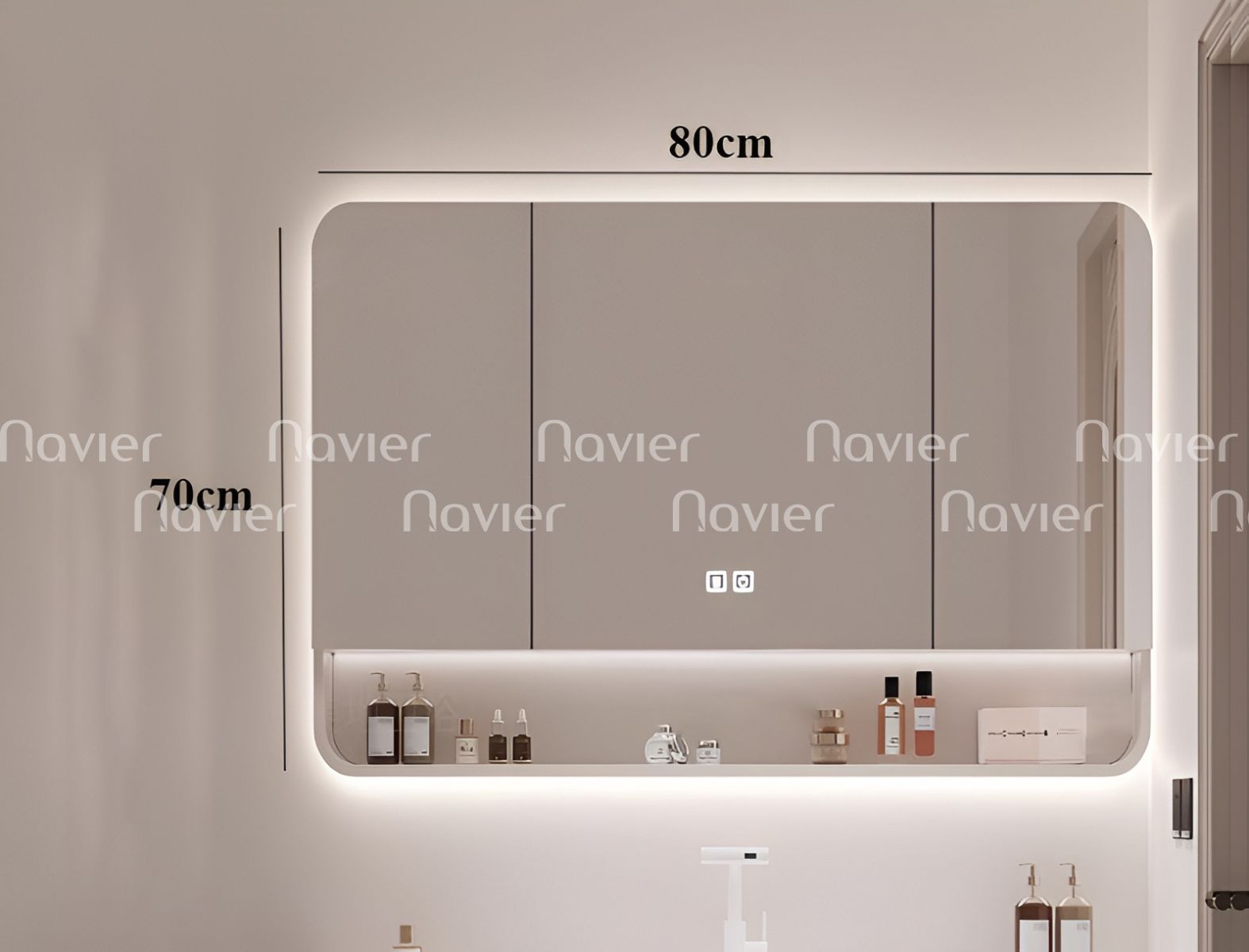 Mẫu Tủ Gương Lavabo Nhựa PVC Navier NV-TG013 không chỉ là một chiếc tủ lavabo nhà tắm thông thường mà nó còn được đánh giá cao bởi thiết kế sang trọng, có đèn LED hỗ trợ ánh sáng và đặc biệt là thiết kế rộng rãi để giúp người dùng chứa đựng được nhiều đồ đạc hơn.