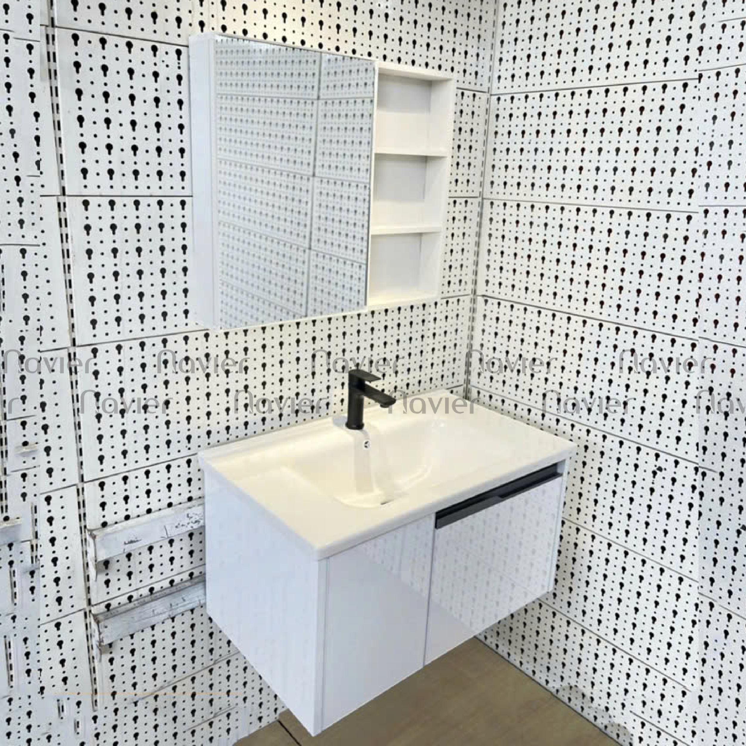 - Ngăn chứa đồ: Cả tủ gương và tủ dưới đều có ngăn chứa rộng rãi, tiện lợi.