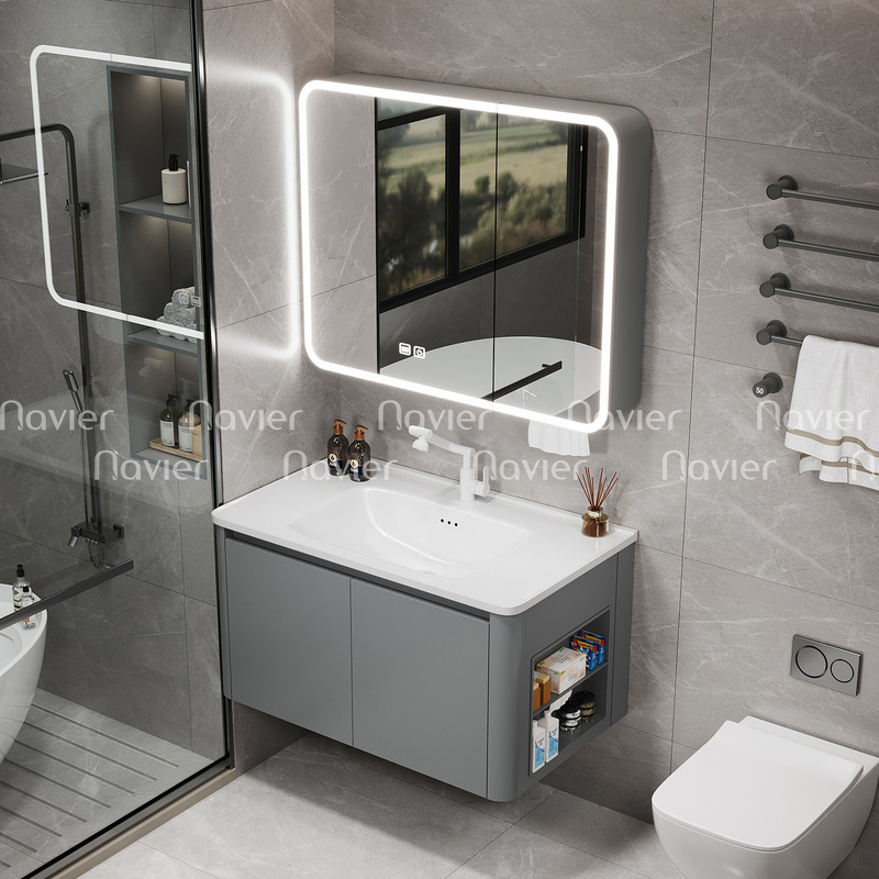 - Tích hợp tủ gương thông minh: Nhiều phiên bản đi kèm tủ gương giúp tăng thêm không gian lưu trữ và làm phòng tắm thêm phần sang trọng.