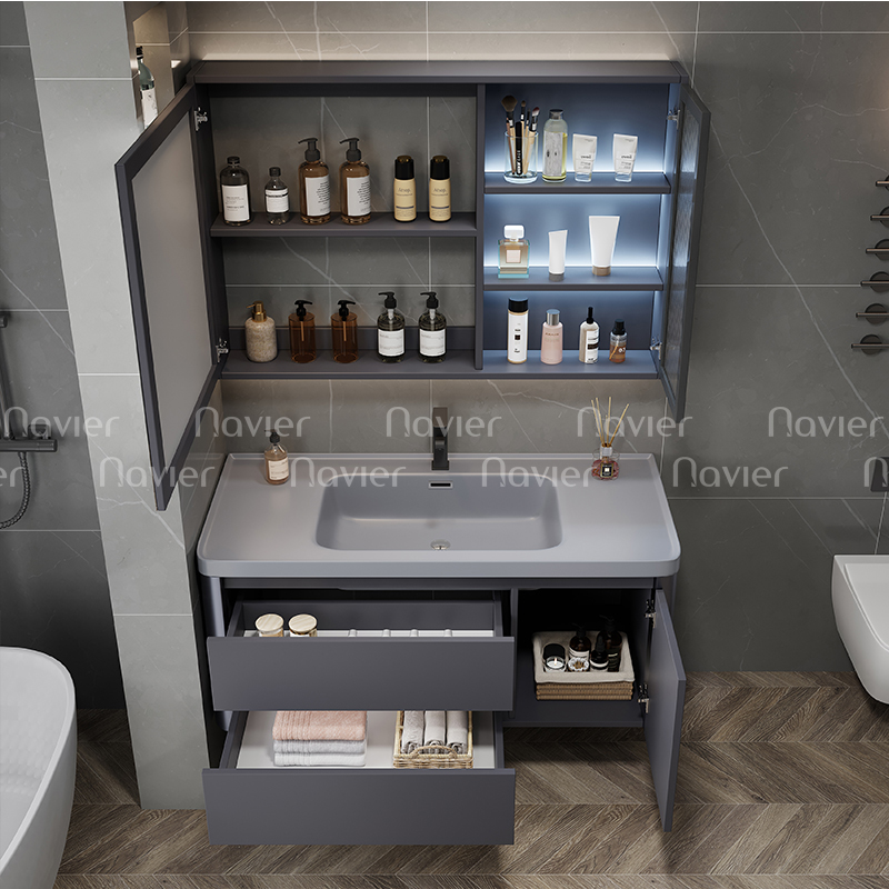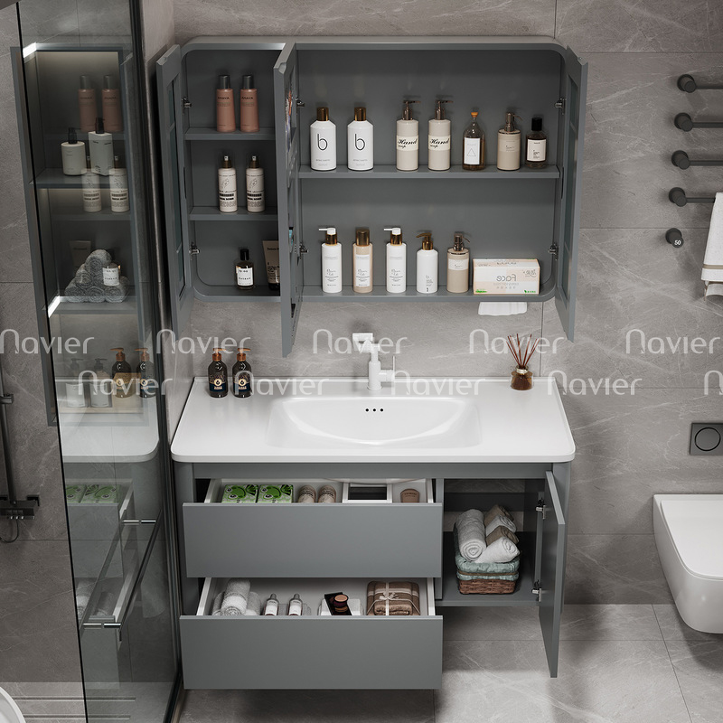 - Không gian lưu trữ rộng rãi: Với nhiều ngăn tủ phân chia hợp lý, người dùng có thể sắp xếp mỹ phẩm, đồ dùng cá nhân, khăn tắm,… một cách gọn gàng.
