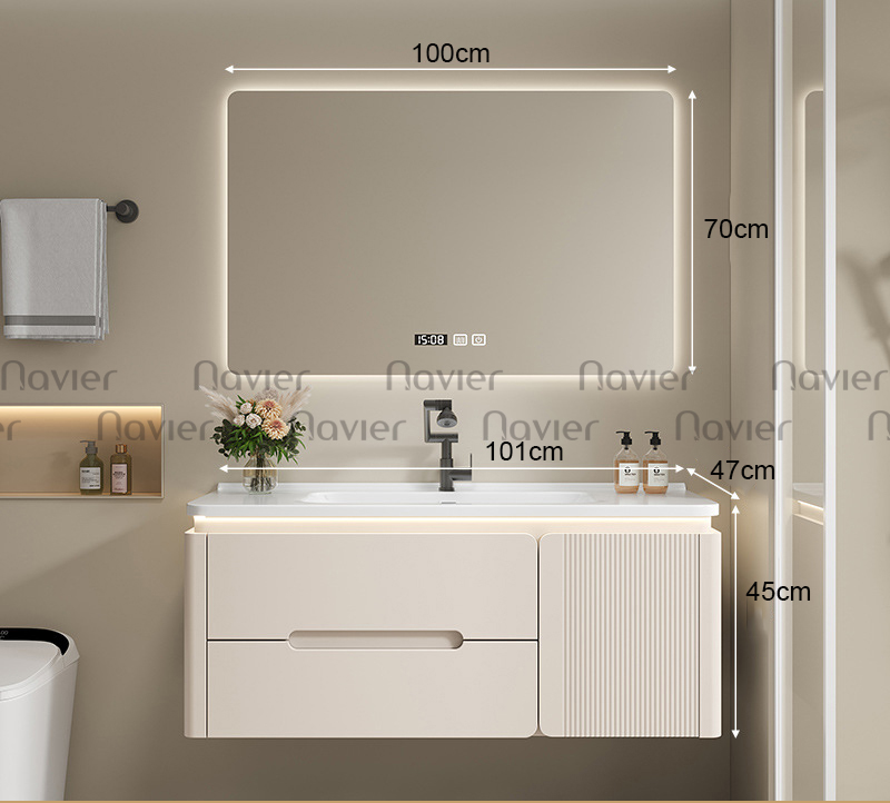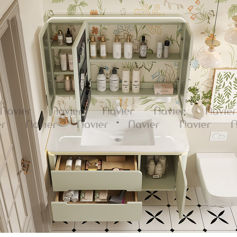 - Lưu trữ tiện ích: Với nhiều ngăn tủ thiết kế khoa học, người dùng có thể cất giữ mỹ phẩm, khăn tắm và đồ dùng cá nhân một cách ngăn nắp.