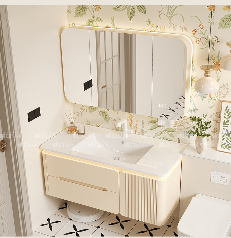 - Tích hợp lavabo cao cấp: Đồng bộ với bồn lavabo sứ trắng sang trọng, tăng tính thẩm mỹ và đảm bảo sự chắc chắn trong quá trình sử dụng.