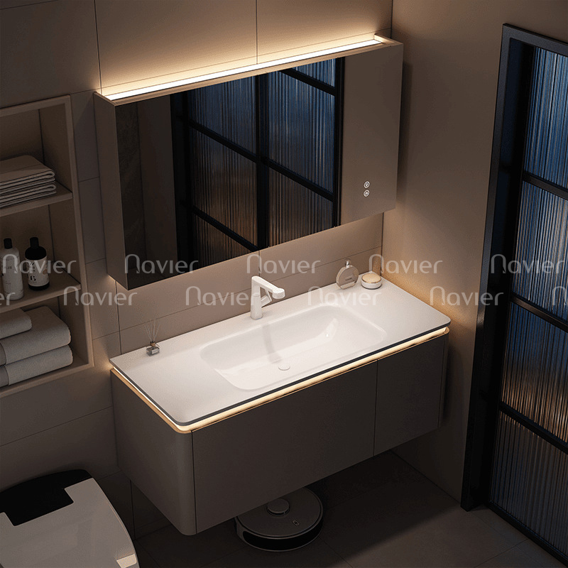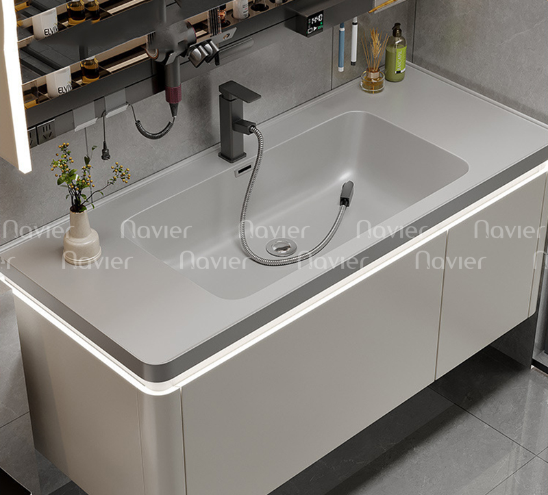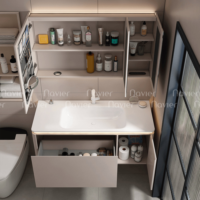 - Tủ gương thông minh: Một số mẫu NV-1827 đi kèm gương LED hoặc tủ gương lớn, vừa tăng tính thẩm mỹ vừa tối ưu không gian lưu trữ.