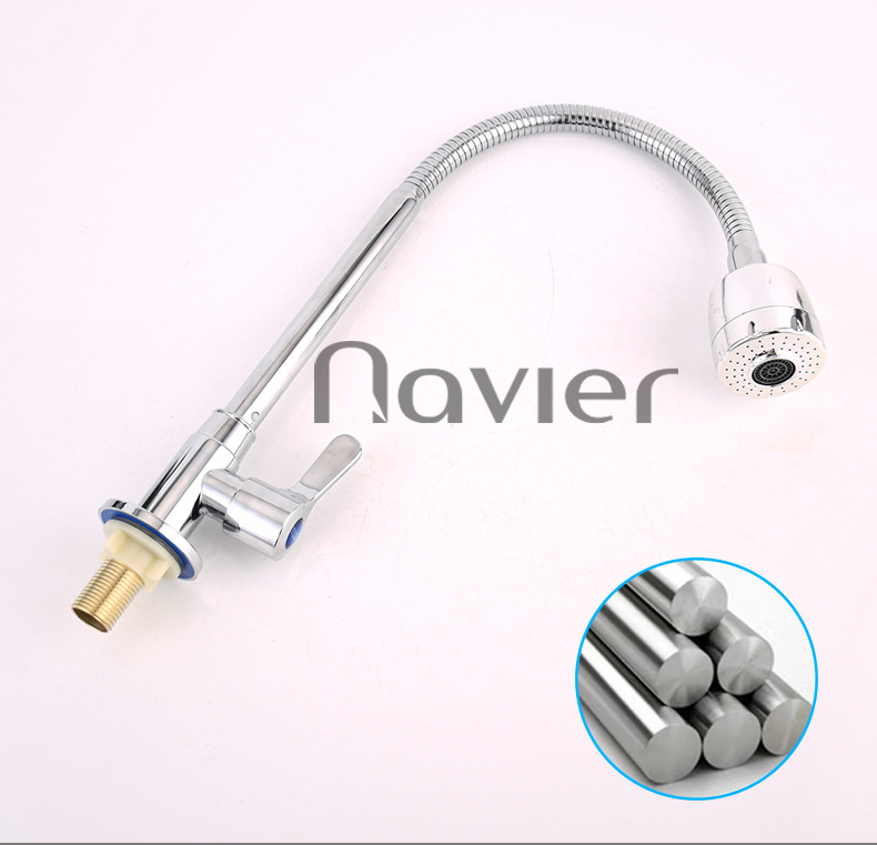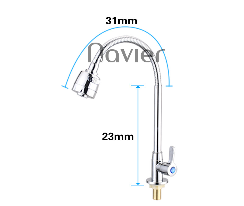Vòi chén lạnh đồng thau mạ crom bóng thân tròn uốn dẻo Navier NV-270B