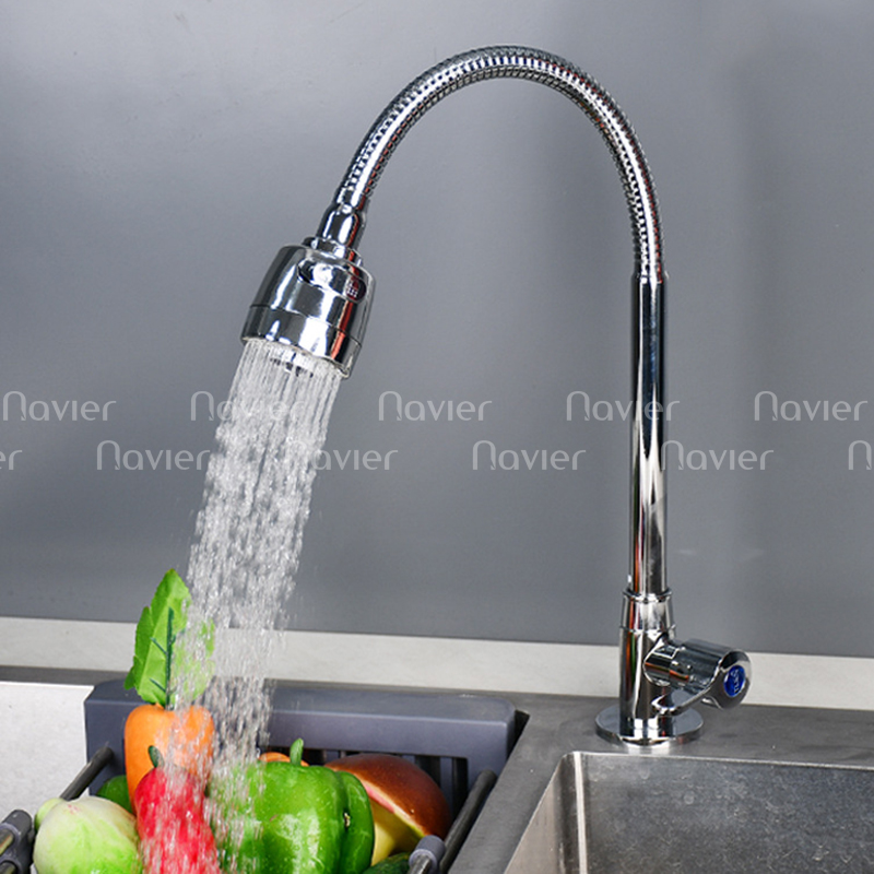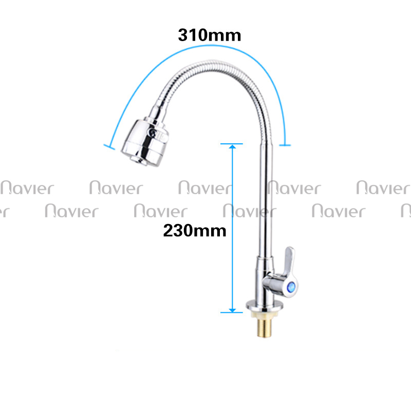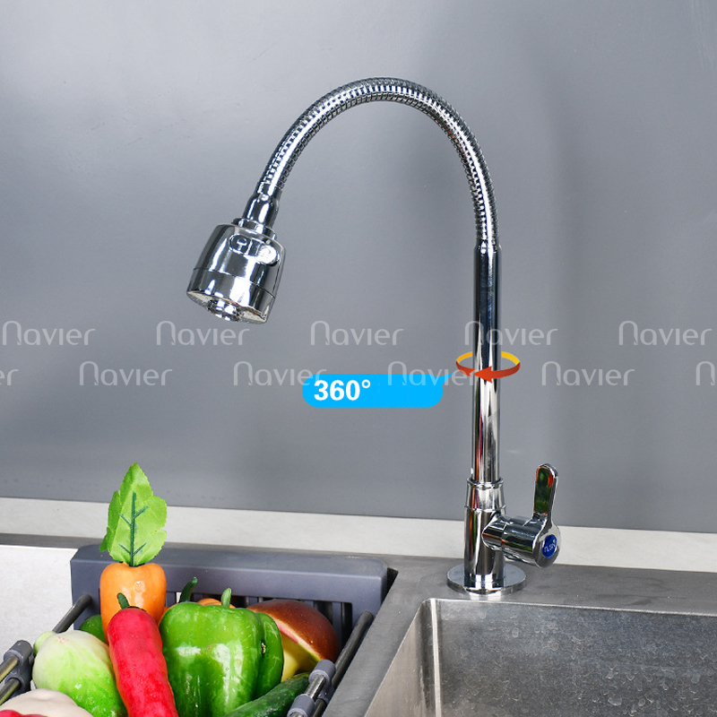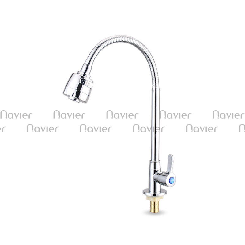 Vòi chén lạnh đồng thau mạ crom bóng thân tròn uốn dẻo Navier NV-270B Đặt online giảm 100.000 đ