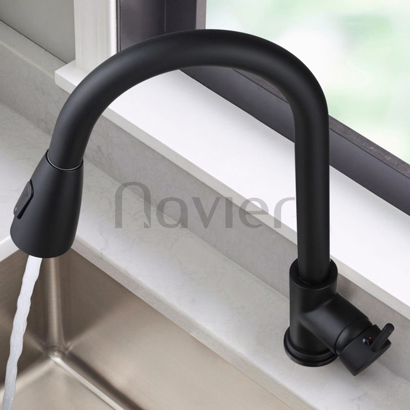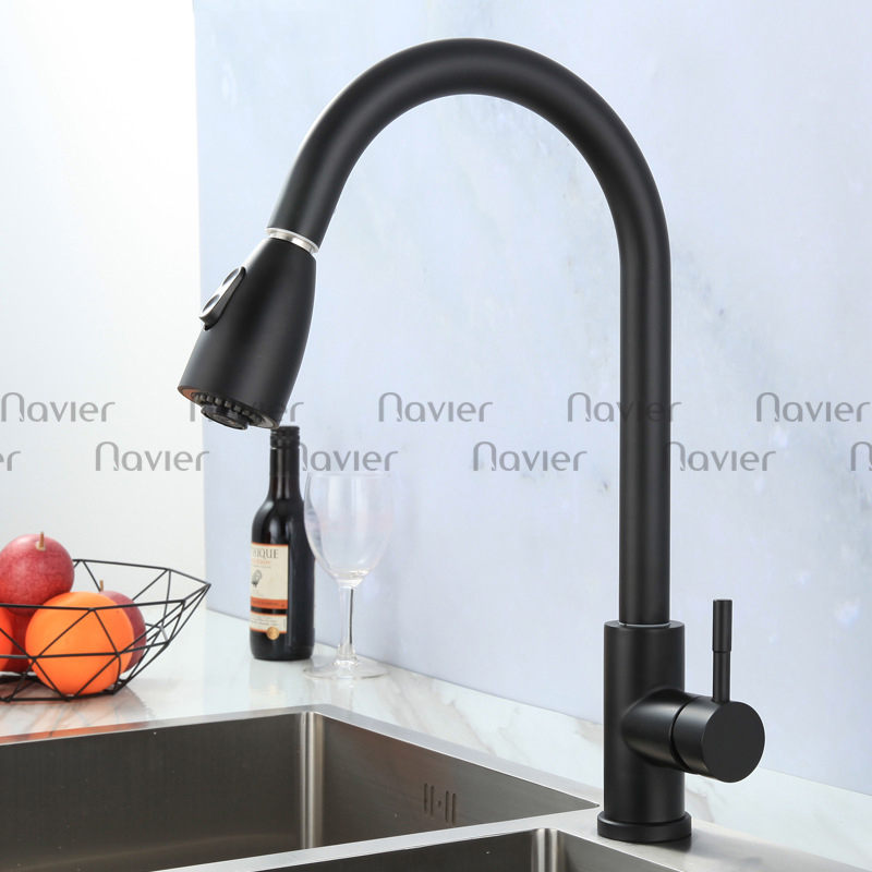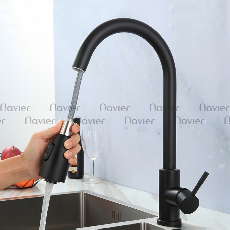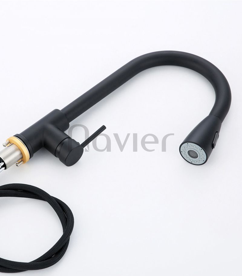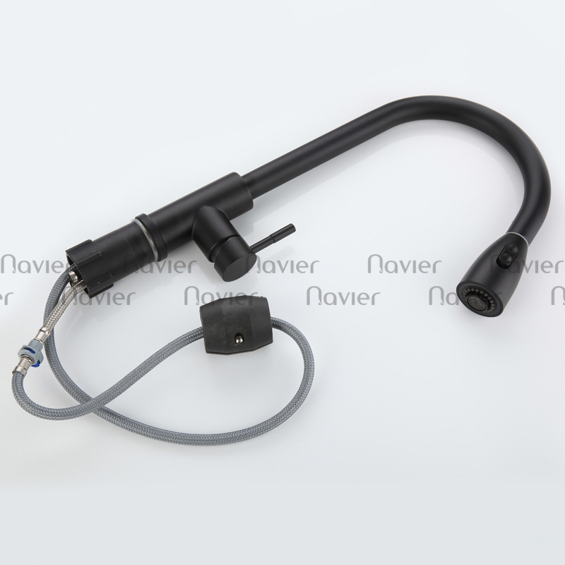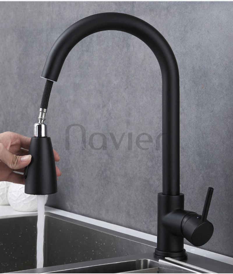 Vòi chén nóng lạnh đầu rút sơn đen tĩnh điện Navier NV-231D có thiết kế đặc biệt với phần đầu vòi có thể kéo dài như vòi tắm hoa sen giúp công việc rửa chén bát, rau củ của chị em trở nên dễ dàng, thuận tiện hơn.