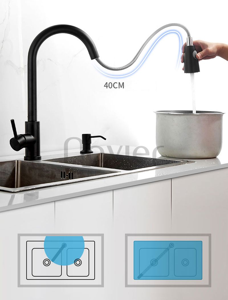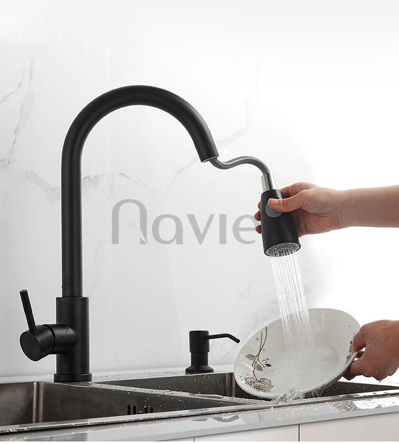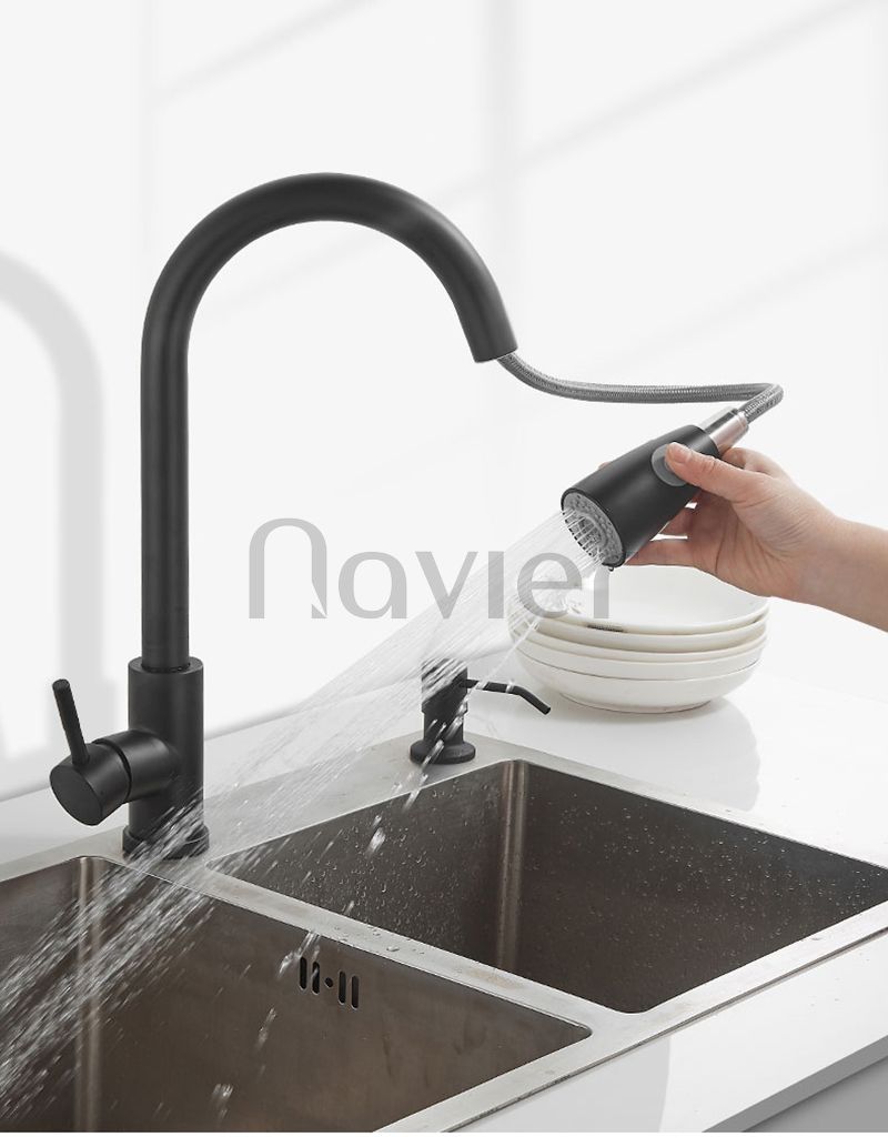 Thay vì chỉ cố định ở một vị trí, việc dọn rửa của chị em bị giới hạn bởi chiều cao & độ rộng của những vòi rửa bát thông thường thì với vòi chén nóng lạnh đầu rút sơn đen tĩnh điện Navier NV-208 bạn có thể sử dụng nước một cách linh hoạt, có thể chùi rửa các dụng cụ nhà bếp dễ dàng hơn, việc lấy nước để đun nấu cũng thuận tiện hơn rất nhiều.
