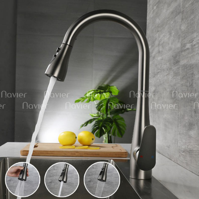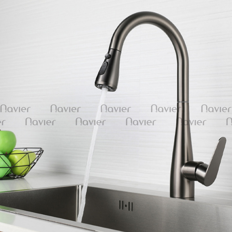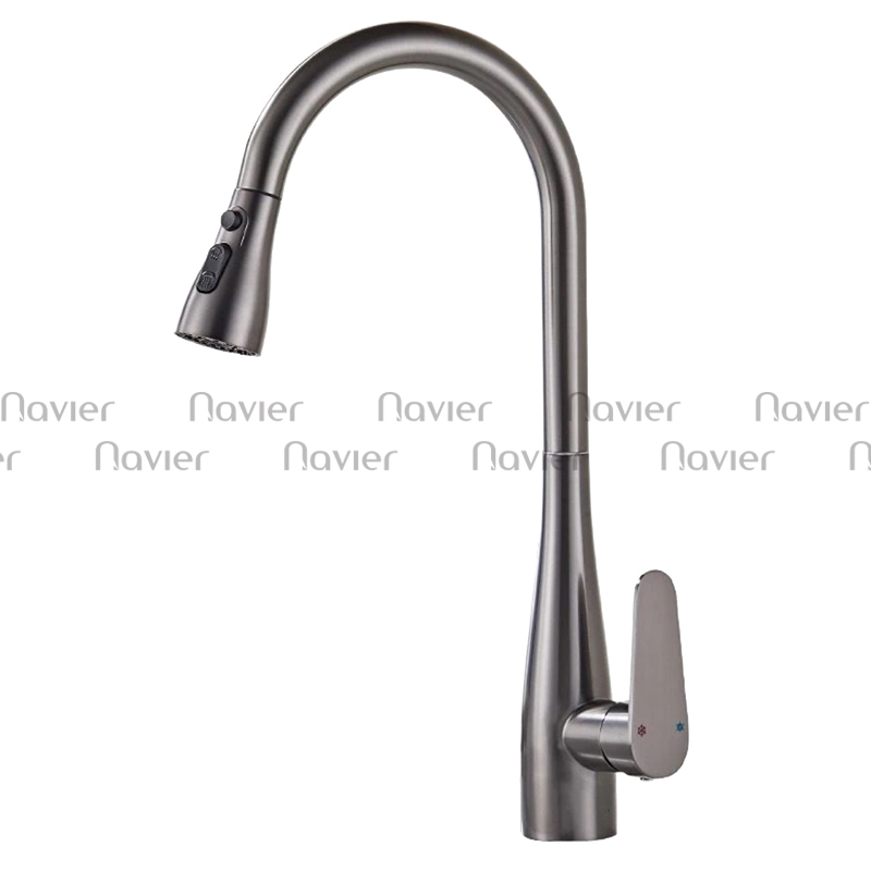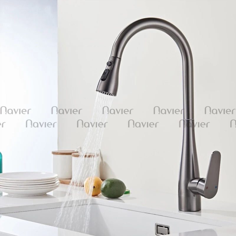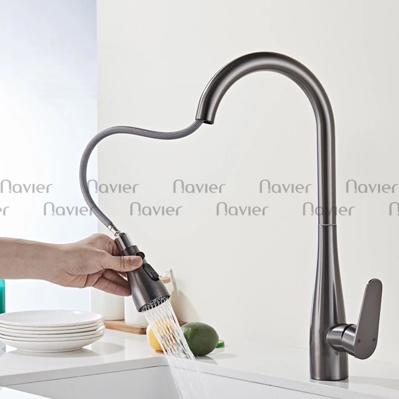 Vòi chén nóng lạnh đầu rút sơn xám tĩnh điện Navier NV-209X Đặt online giảm 200.000 đ