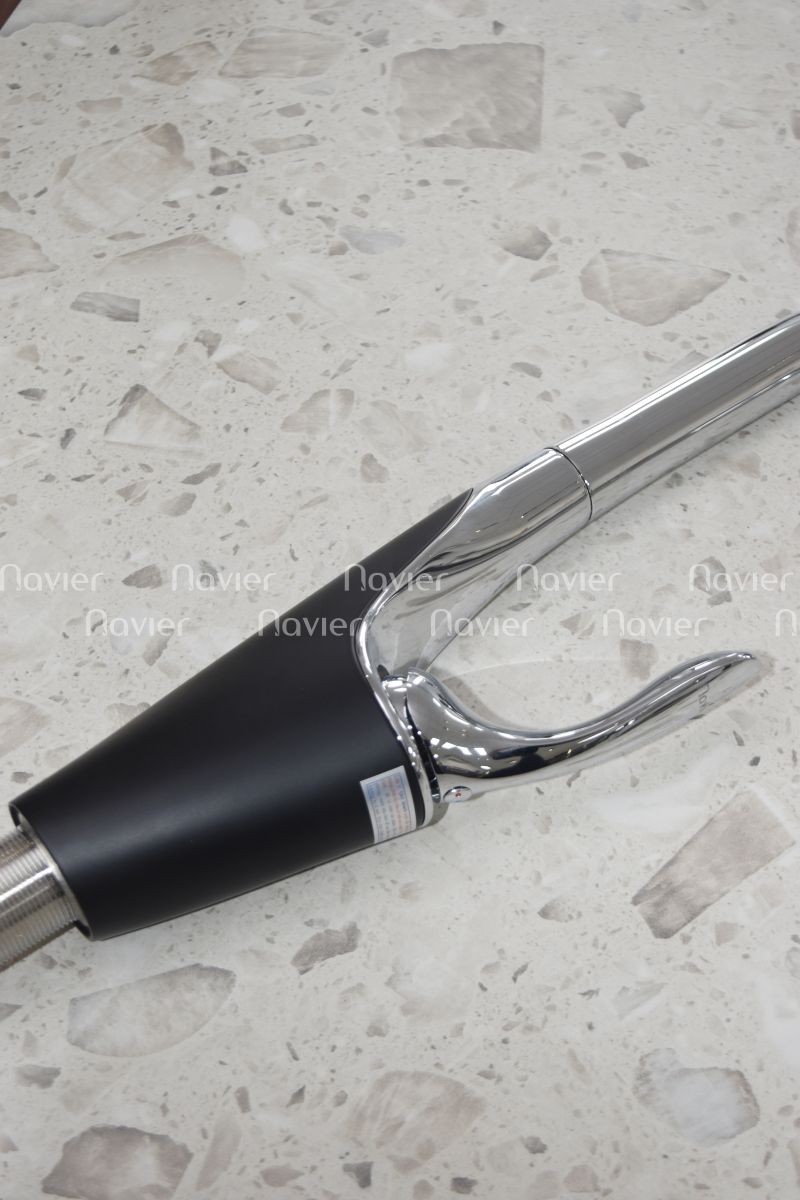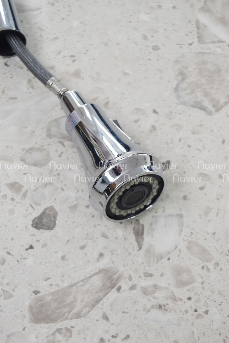 Dây rút có lớp vỏ ngoài bằng inox, không xoắn giúp bạn kéo đầu vòi ra xa hơn 35-40cm để xả nước linh hoạt ở những vị trí mà vòi rửa bát thông thường không thể với tới.