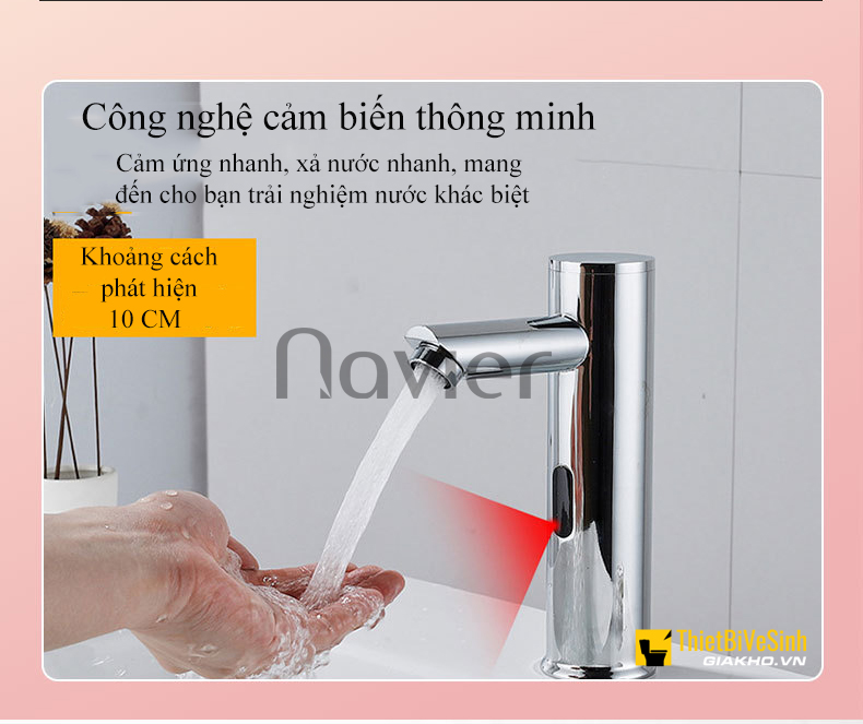 - Với công nghệ ứng dụng cận hồng ngoại với bước sóng 700mm-2000m làm khoảng cách phát hiện chính, kết hợp với vật liệu cảm quang có độ nhạy cao để gửi và nhận, mang lại trải nghiệm vòi lavabo thông minh hoàn hảo cho người dùng.