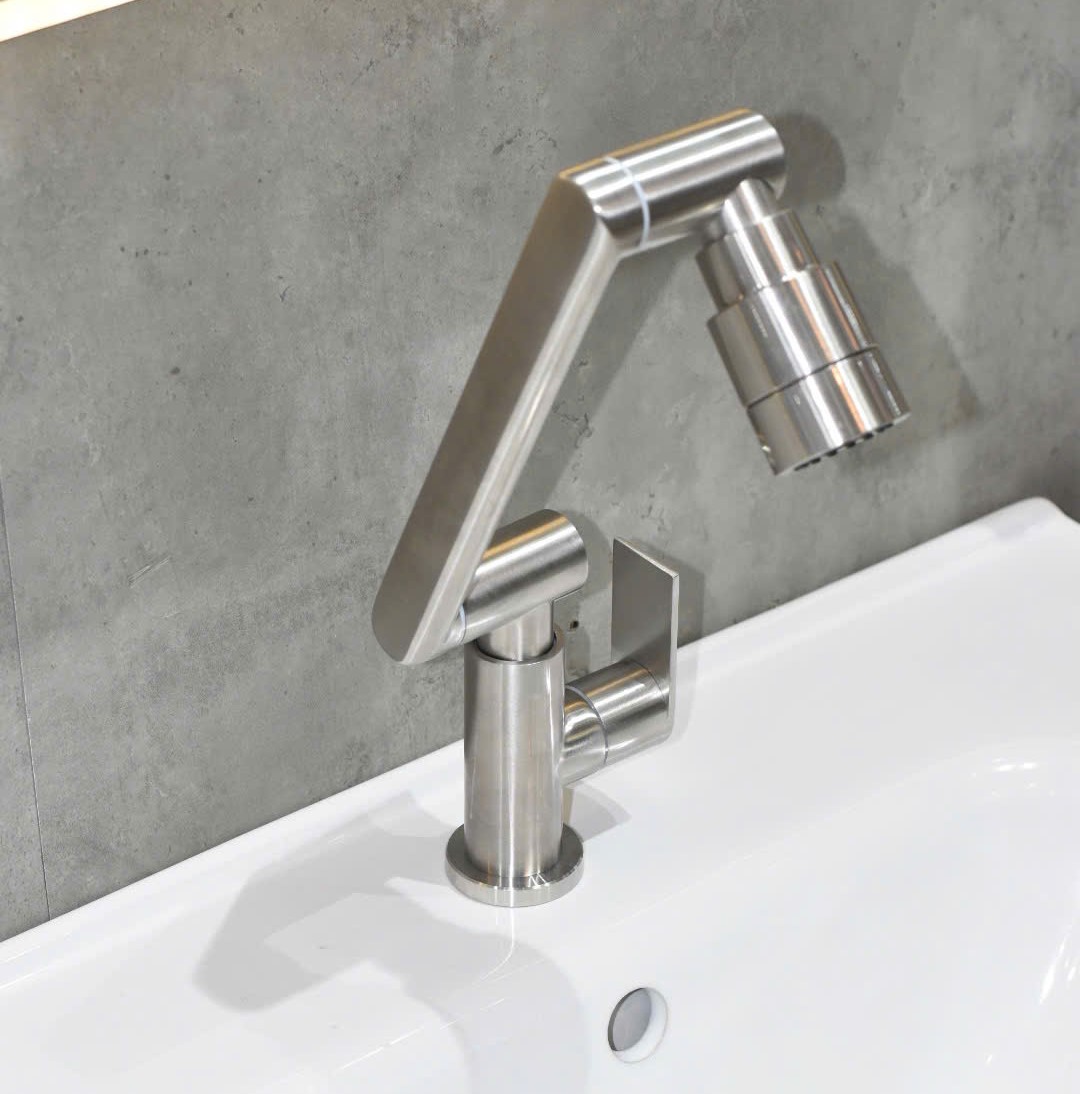 - Cấu trúc xoay gập linh hoạt: Vòi được thiết kế với các khớp nối thông minh, cho phép xoay – gập – điều chỉnh góc xả nước tùy ý.