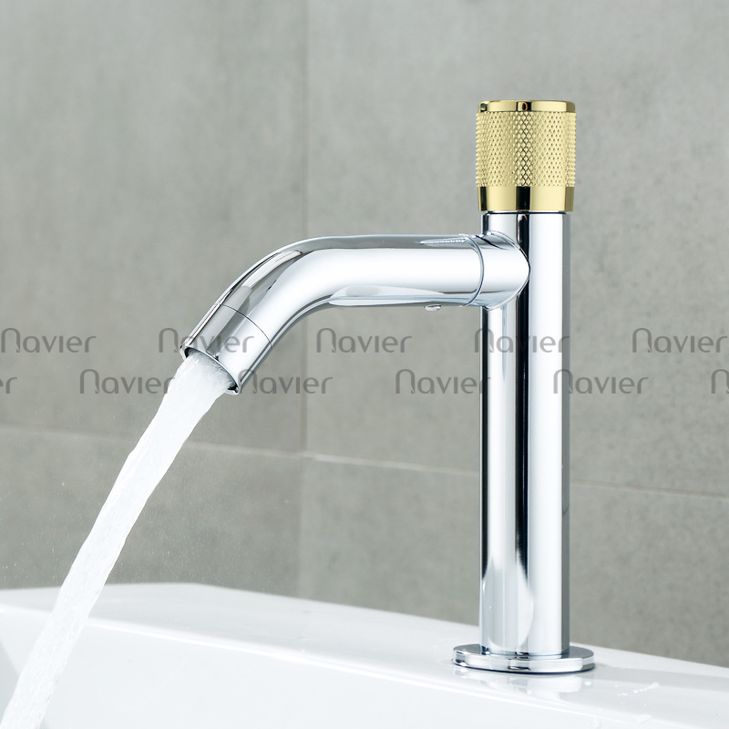 Vòi lavabo lạnh núm trắng đầu vòi xoay 360 đồng thau mạ crome Navier NV-724V với chất lượng vượt trội, thiết kế đẹp mắt chắc chắn sẽ là dòng sản phẩm cần thiết trong căn phòng tắm nhà bạn.