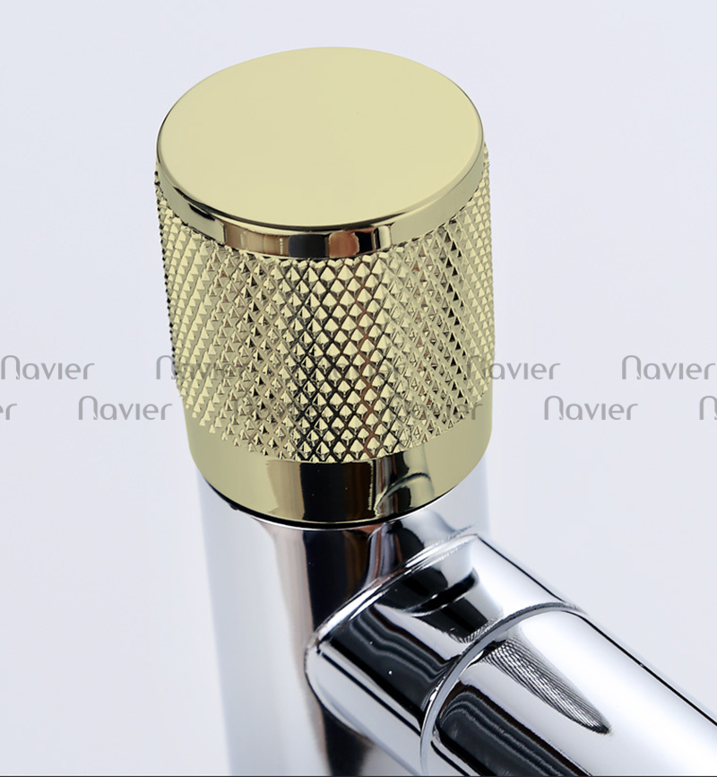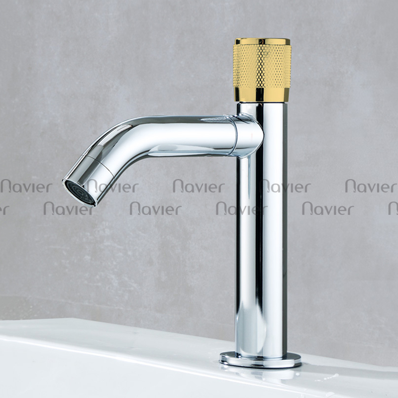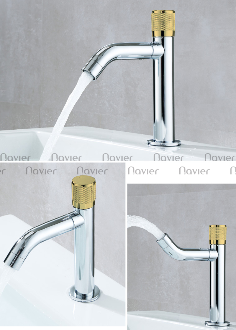Vòi lavabo lạnh núm vàng đầu vòi xoay 360 đồng thau mạ crome Navier NV-724V được sản xuất bằng chất liệu đồng thau chống han gỉ rất tốt, bề mặt được phủ một lớp mạ crome sáng bóng giúp sản phẩm trở nên đẹp mắt hơn rất nhiều. Tuy chỉ là vòi lavabo lạnh với một đường nước xả nhưng sản phẩm này vẫn đáp ứng được các nhu cầu sử dụng của khách hàng, là mẫu vòi lavabo được rất nhiều gia đình sử dụng.