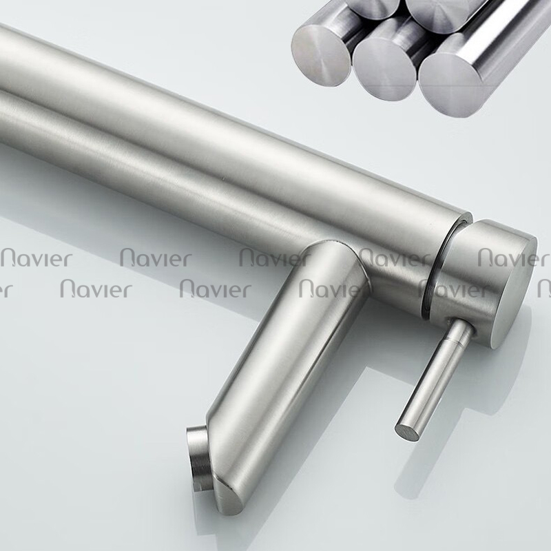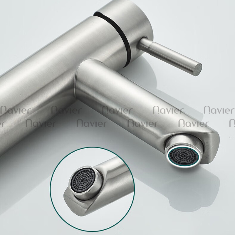 - Đầu Vòi lavabo nóng lạnh điếu tròn inox304 Navier NV-720(30cm) được thiết lọc và tạo bọt trong dòng chảy giúp tiết kiệm nước, không bắn nước.