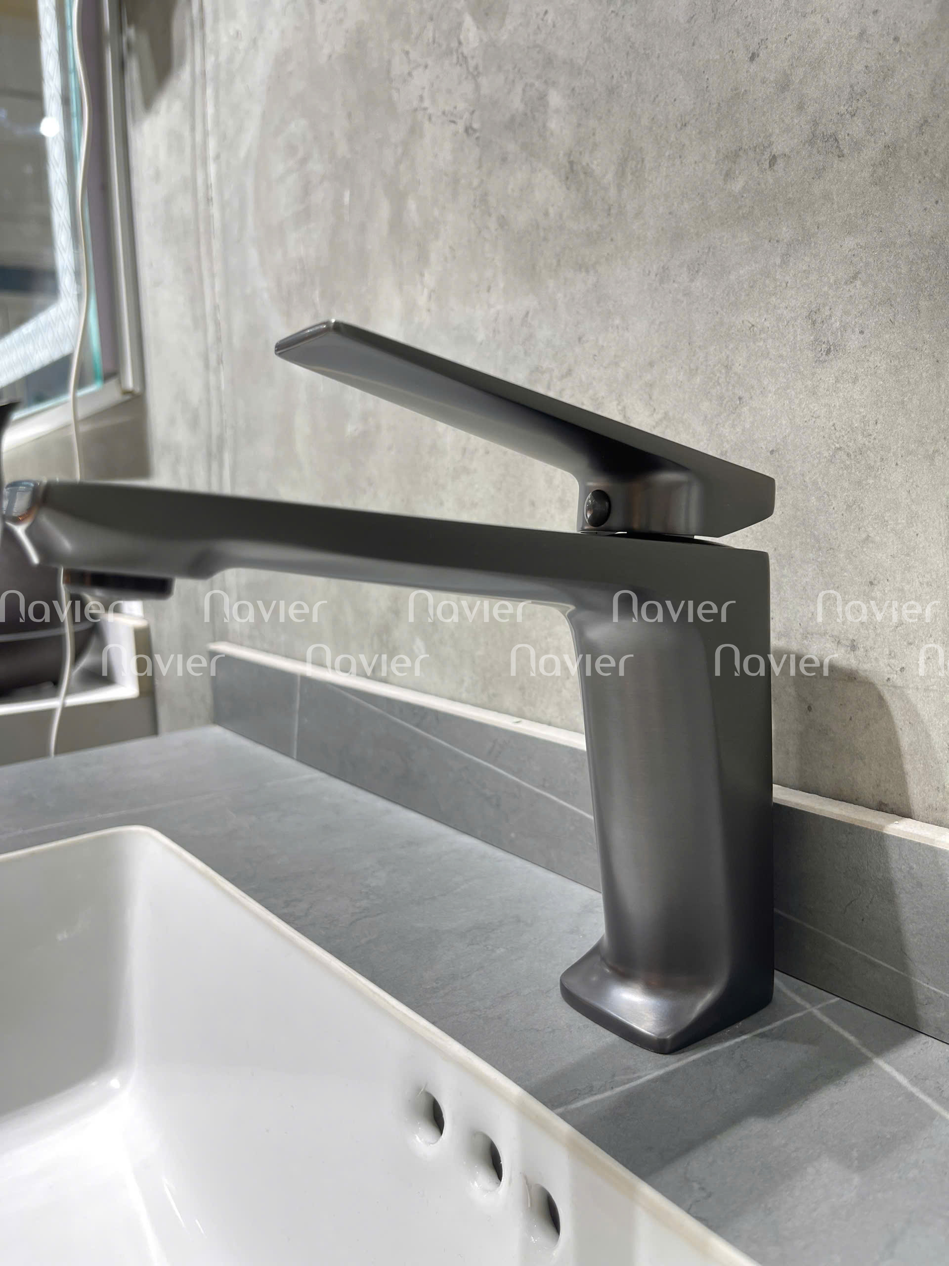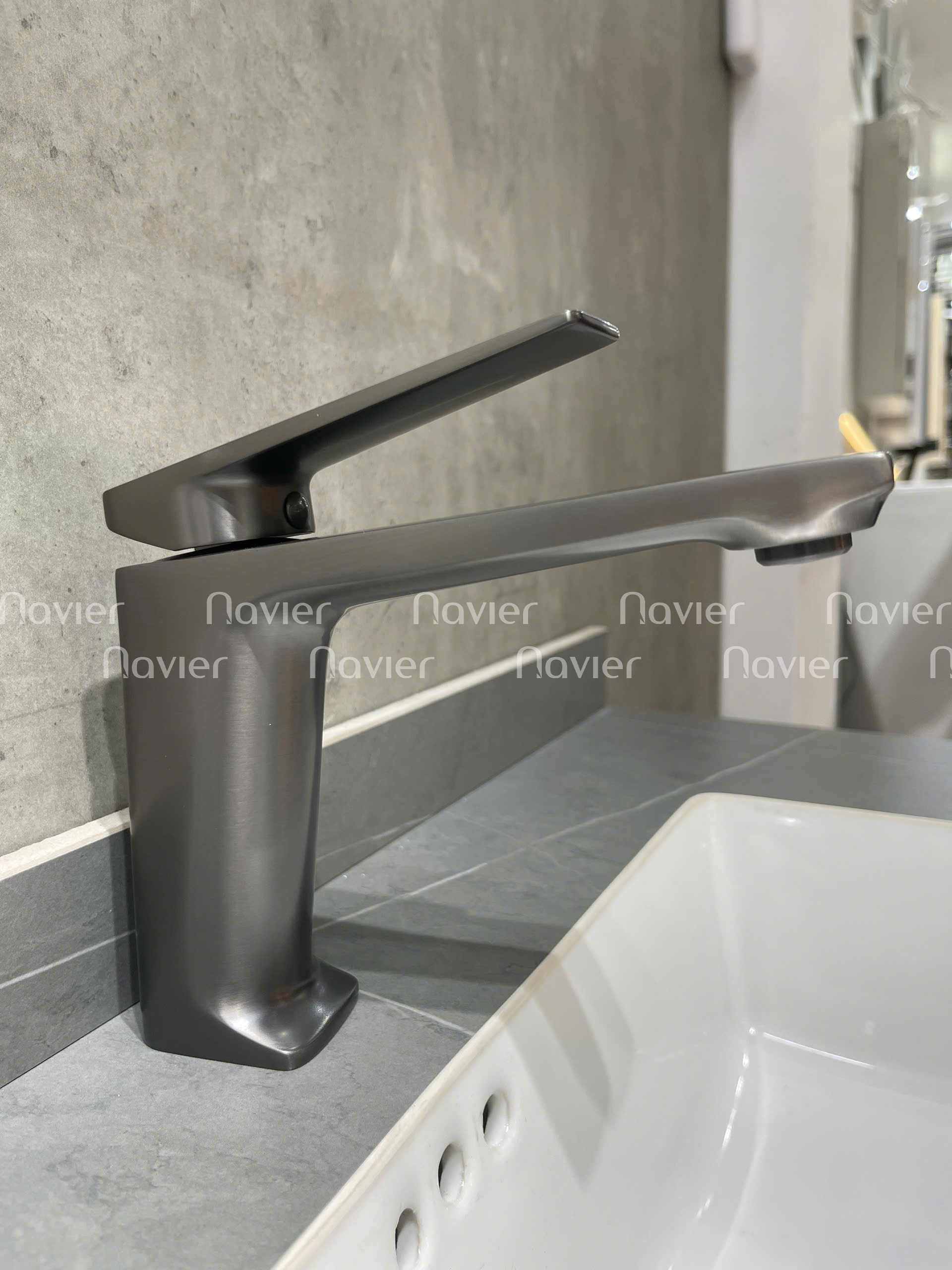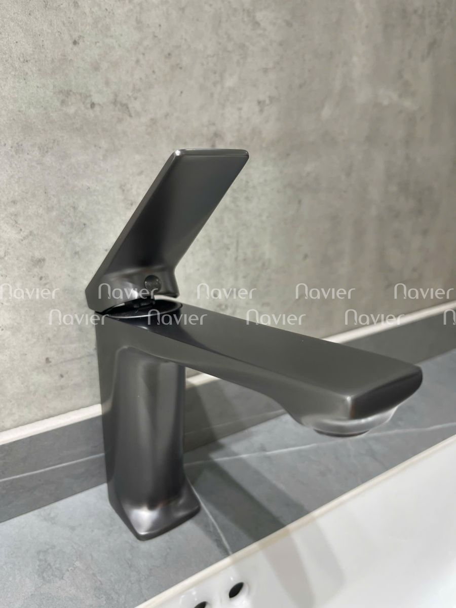 Không giống những vòi nước thông thường với lớp mạ crom bóng loáng, Navier NV-ZY79 nổi bật với lớp hoàn thiện màu xám mờ sang trọng, mang phong cách hiện đại, dễ phối hợp với các dòng lavabo màu trắng, xám hoặc đen.