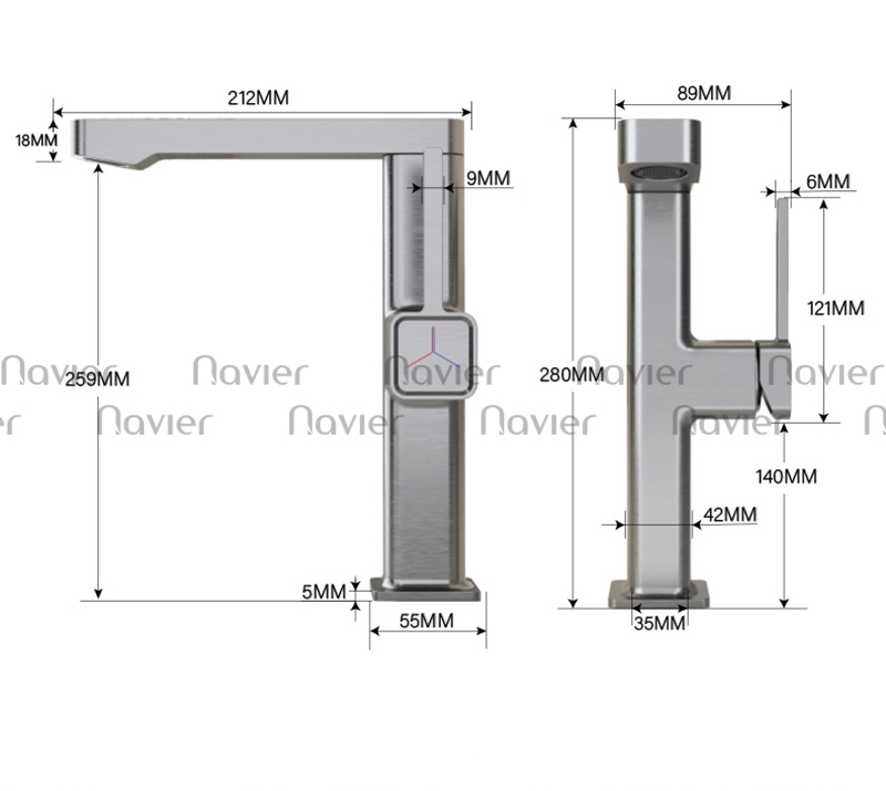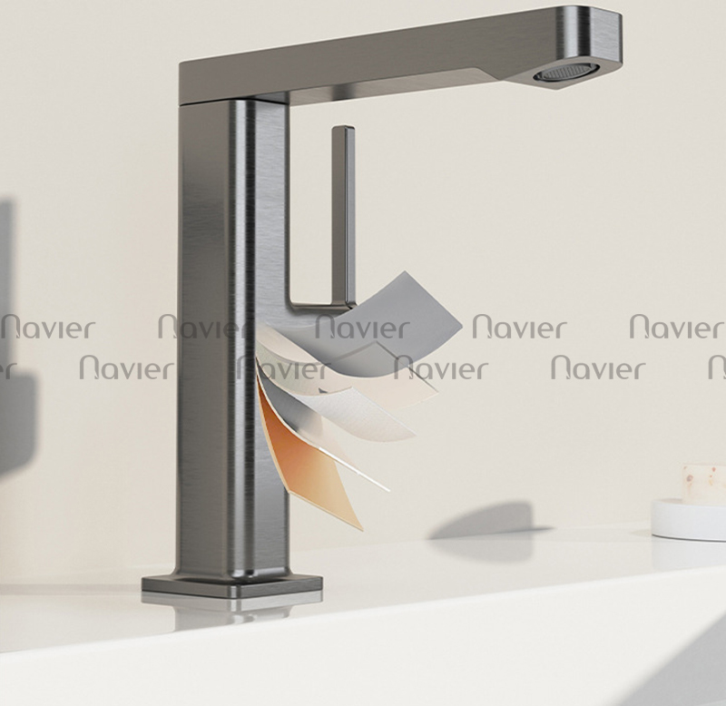 Navier NV-766X sở hữu thiết kế gọn gàng, đường nét thanh thoát, phù hợp với nhiều phong cách nội thất khác nhau. Bề mặt được phủ màu xám cao cấp, giúp sản phẩm nổi bật, hạn chế bám bẩn, chống trầy xước và dễ dàng vệ sinh. Gam màu trung tính hiện đại giúp vòi lavabo dễ dàng phối hợp với chậu rửa và các thiết bị vệ sinh khác.